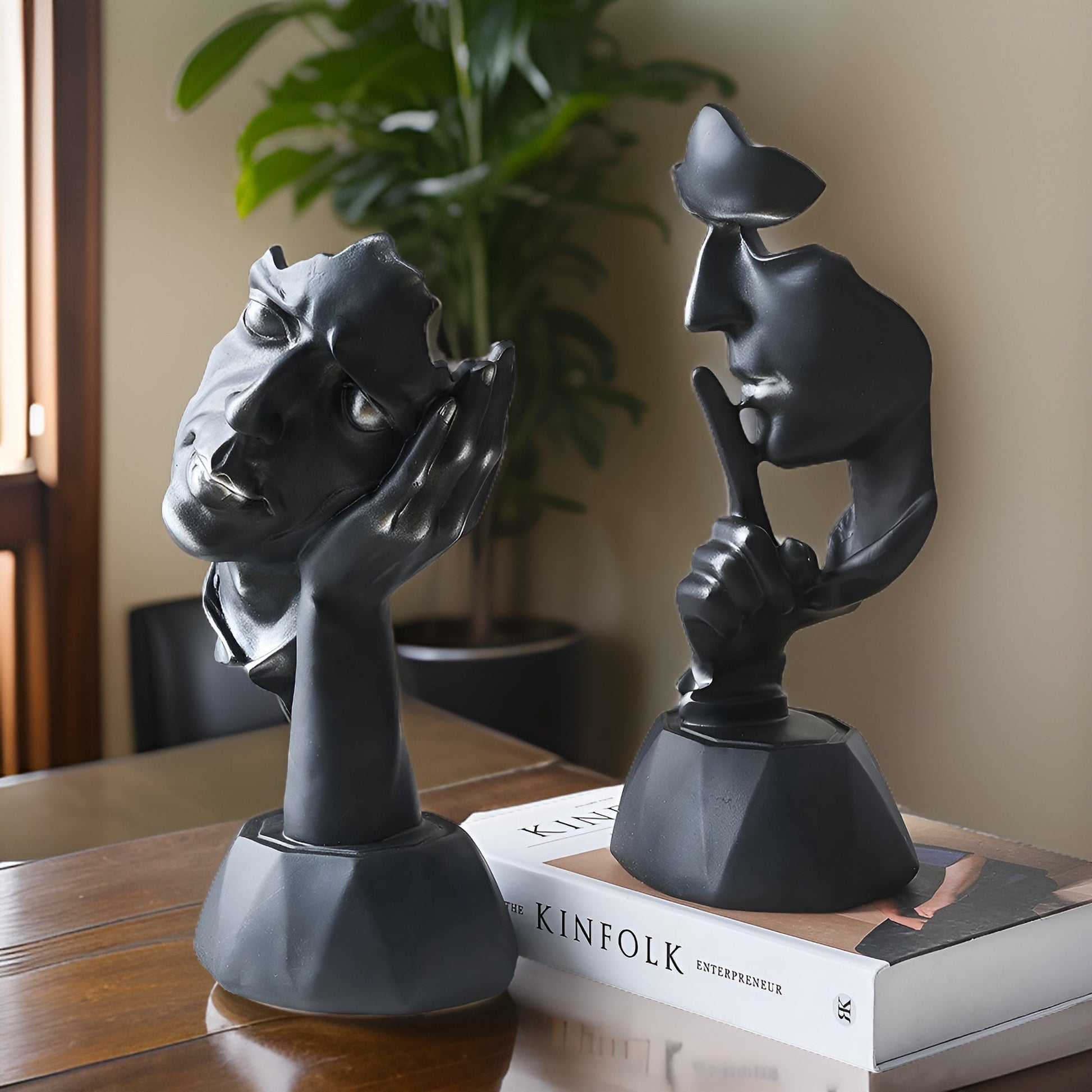 Diese abstrakte Gesichtsskulptur ist eine perfekte Ergänzung für Ihr Interieur, entworfen, um eine einzigartige und künstlerische Atmosphäre zu schaffen. Das hochwertige Harzmaterial gewährleistet Haltbarkeit und langanhaltende Schönheit. Diese Skulptur ist nicht nur ein dekoratives Stück, sondern auch ein Gesprächsthema, das jeden Raum belebt.