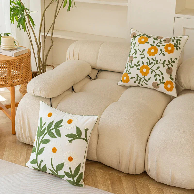 Der Amélia Kissenbezug ist sorgfältig mit feiner floraler Stickerei fertiggestellt, wodurch jedes Stück einzigartig wird. Die natürliche Baumwolle fühlt sich wunderbar weich an und schafft eine stilvolle, beruhigende Atmosphäre im Zuhause.