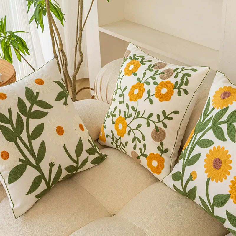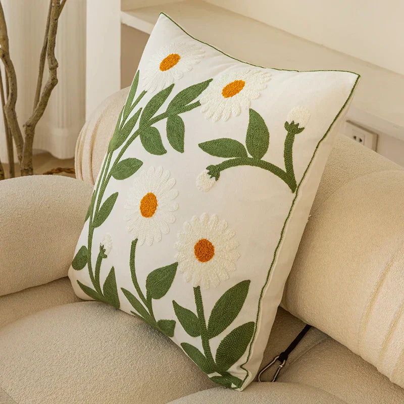 Amélia – Baumwollkissenbezug mit feiner floraler Stickerei