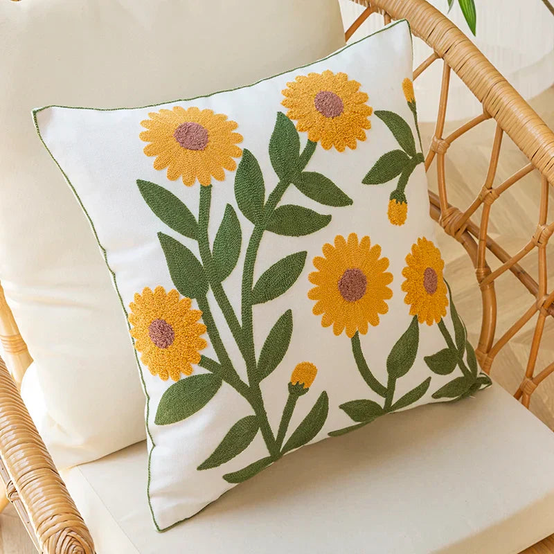 Amélia – Baumwollkissenbezug mit feiner floralem Stickerei