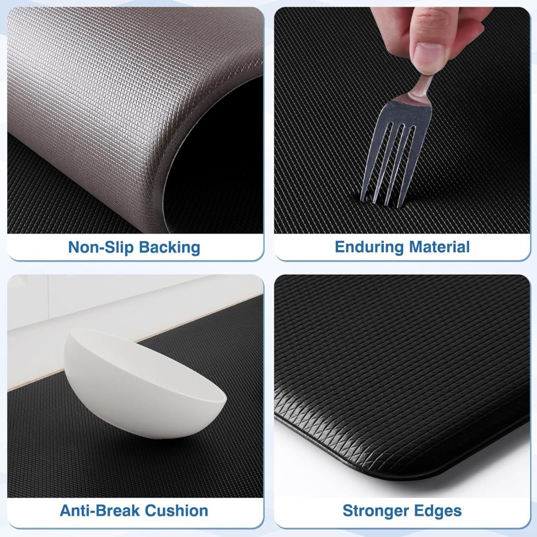 Entwickelt für überlegene Unterstützung und Haltbarkeit, verbessern die Anti-Ermüdungs-Küchenmatten den Komfort und fügen Ihrem Zuhause Stil hinzu. Ob in der Küche, im Waschraum oder am Arbeitsplatz, diese Matte bietet die perfekte Mischung aus Polsterung und Praktikabilität.