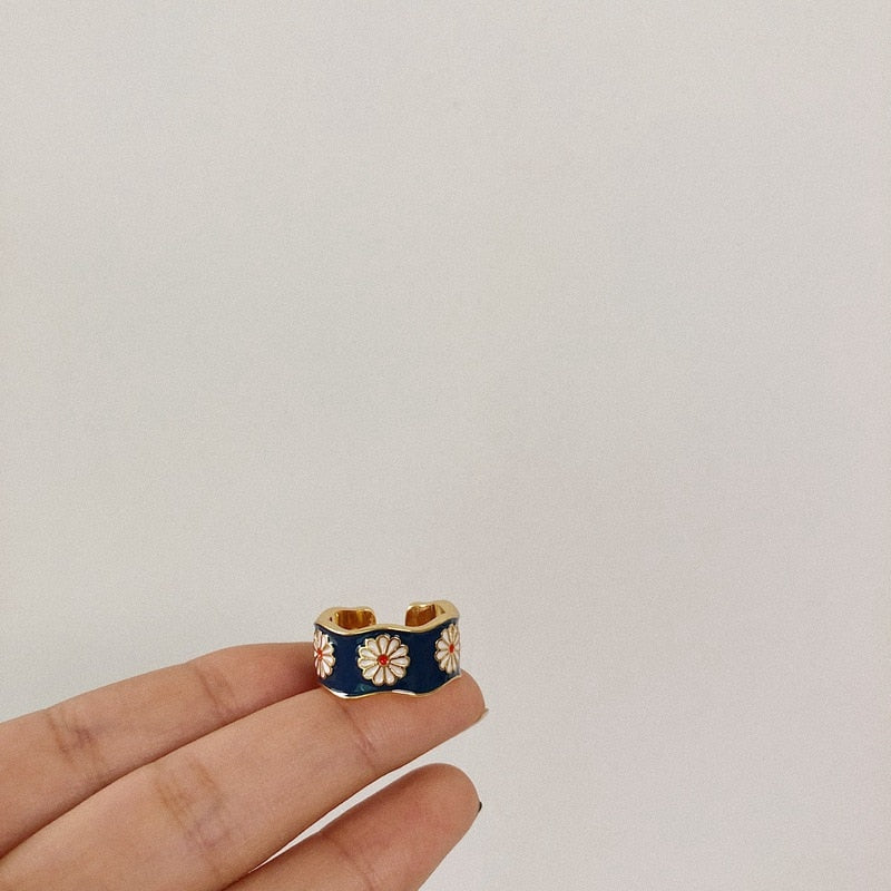 AOMU Daisy Emaille Ring – Vintage Barock Verstellbarer Blumenschmuck