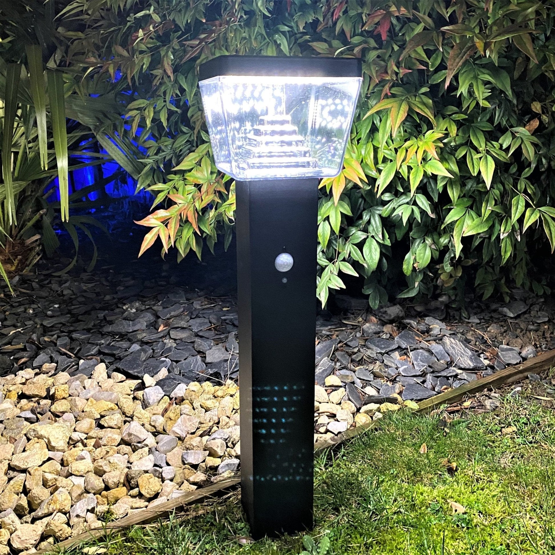 Autonome Solarleuchte mit Edelstahlgehäuse und Bewegungsmelder