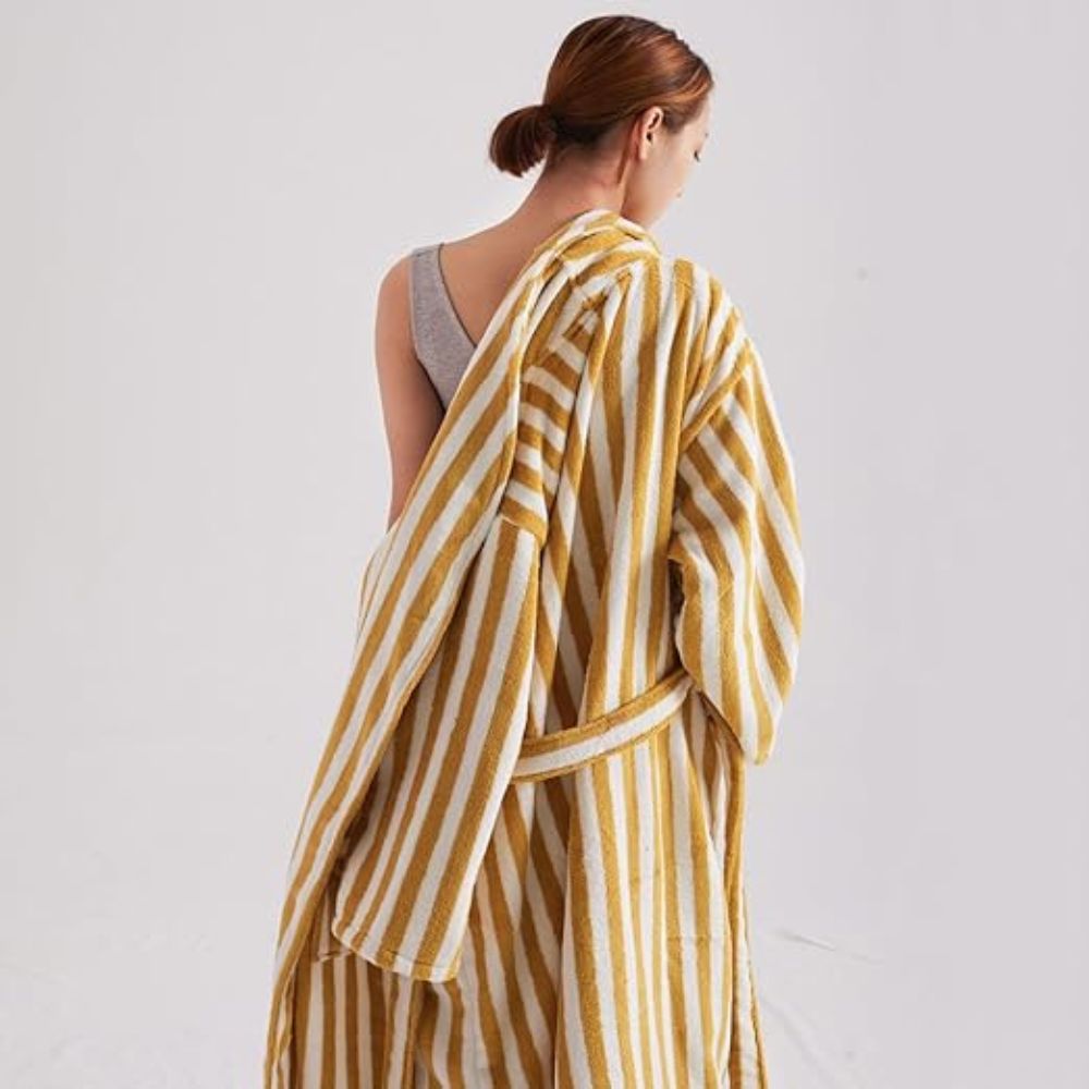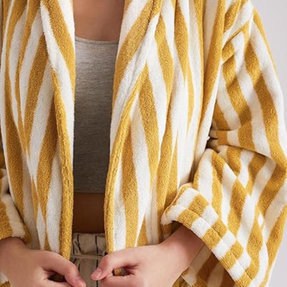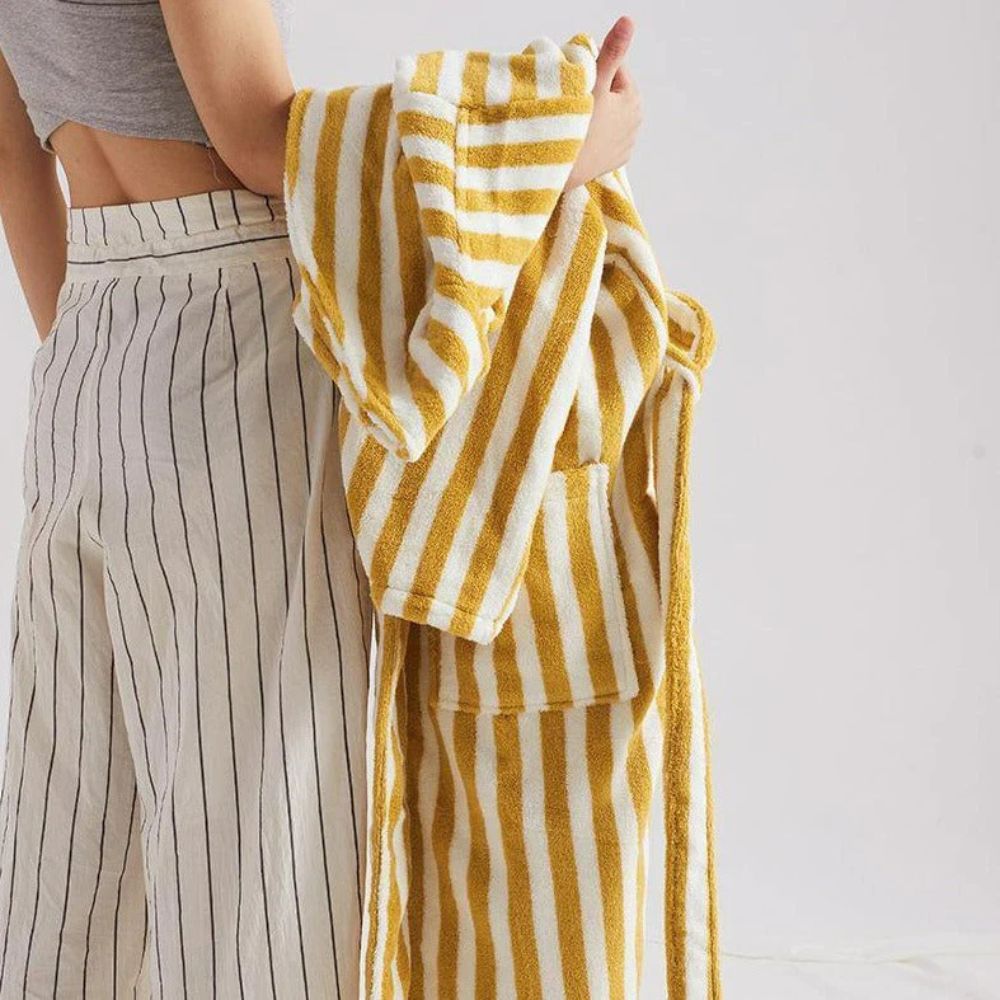 Gönnen Sie sich einen luxuriösen Moment der Entspannung mit dem Bademantel Baumwolle - Himmlische Weichheit - Robin. Entworfen für moderne Männer und Frauen, die auf Komfort Wert legen, umhüllt Sie dieser gestreifte Bademantel aus langfaseriger Baumwolle mit unübertroffener Weichheit und vermittelt Ihnen ein Wohlgefühl, das es in den besten Hotels gibt.