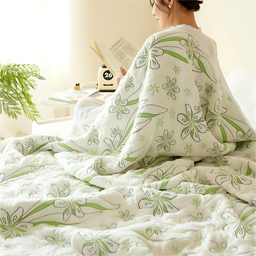 Erleben Sie ultimative Ruhe mit unserer Bambusfaser Frischstil Blumendecke. Diese Decke besteht aus hochwertiger Bambusfaser, ist sanft zur Haut und perfekt für warme Sommernächte. Sie gewährleistet luxuriöse Weichheit und ist die ideale Wahl für heiße Schläfer, die einen erholsamen Schlaf suchen.