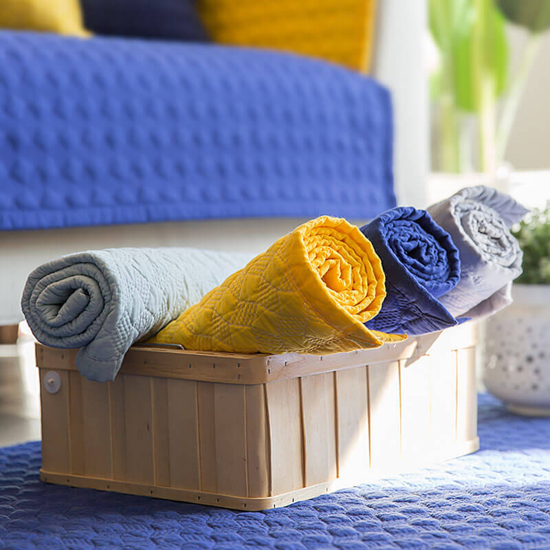 Rückenlehnenbreite unter 32", empfehlen wir, den Bezug 28" x 28" in die dreieckige Form zu falten, die im Bild gezeigt wird. Rückenlehnenbreite über 32", empfehlen wir, den Bezug 36" x 36" in die dreieckige Form zu falten, die im Bild gezeigt wird.