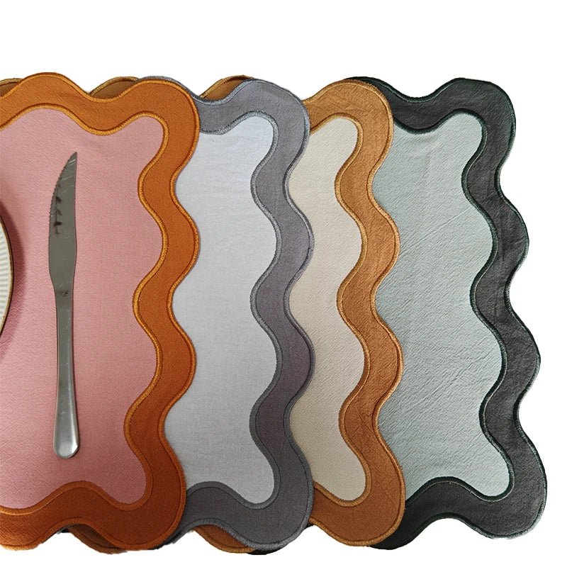 Bestickte Baumwolle Wellenrand Tischunterlage
