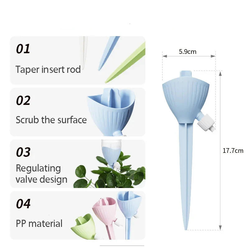 Dieses clevere Werkzeug bietet automatisches, anpassbares Bewässern, das Ihre Blumen gesund und florierend hält — selbst wenn Sie nicht da sind. Perfekt für Hausgärten, Balkone und Zimmerpflanzen.