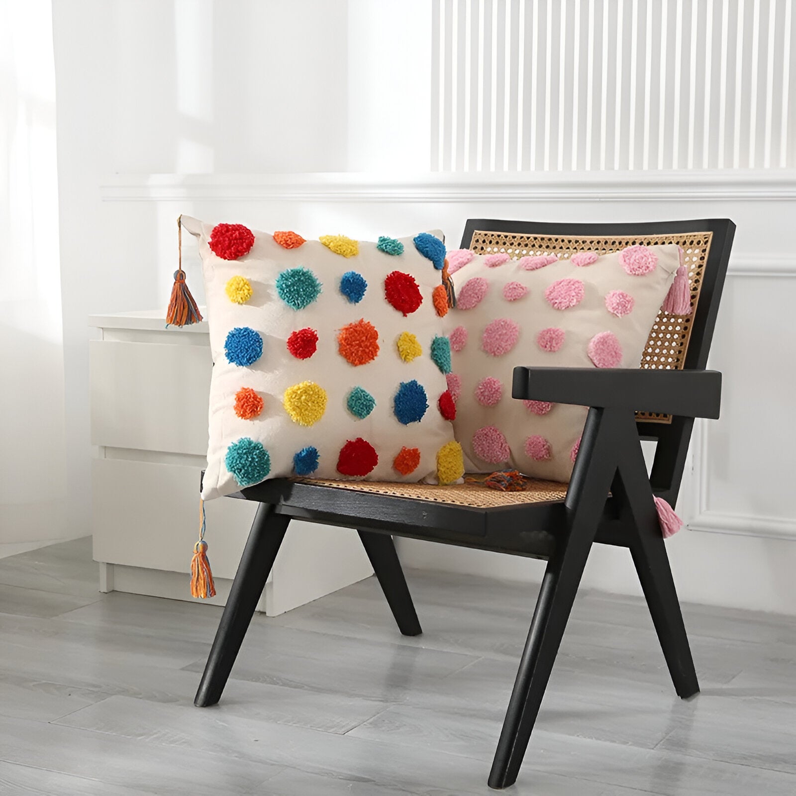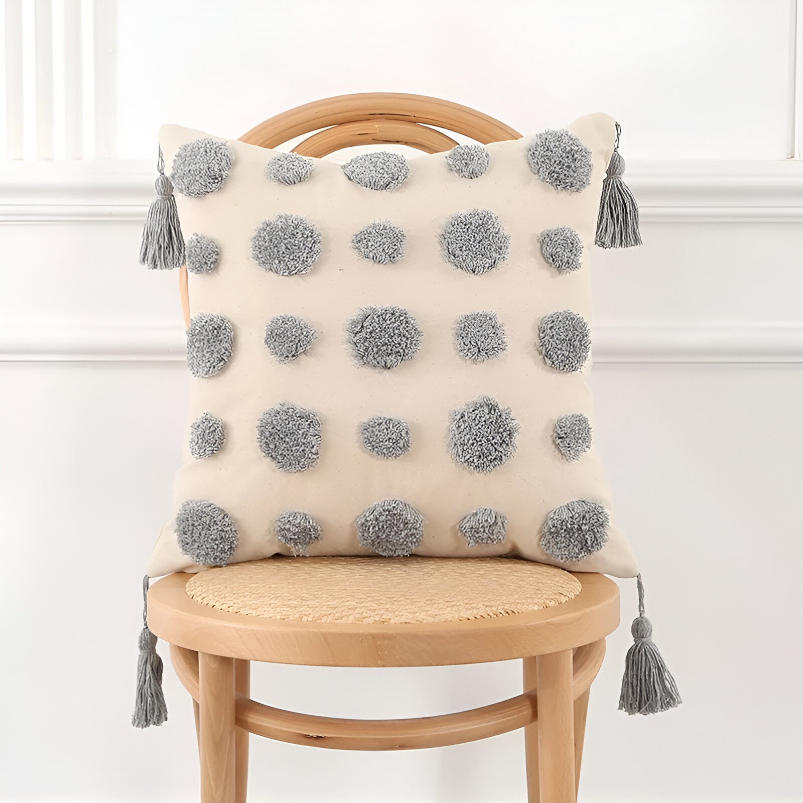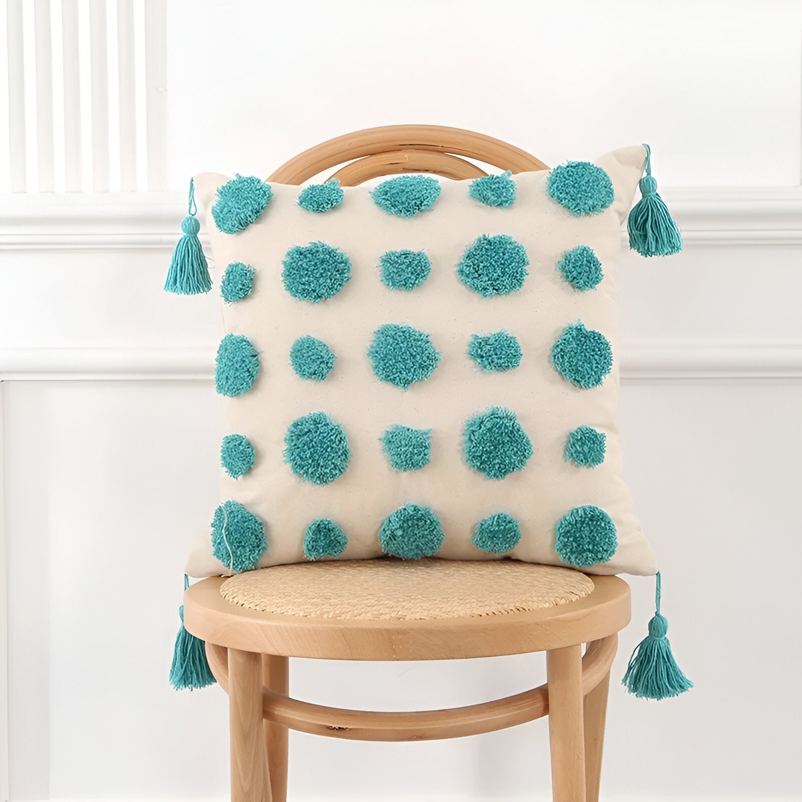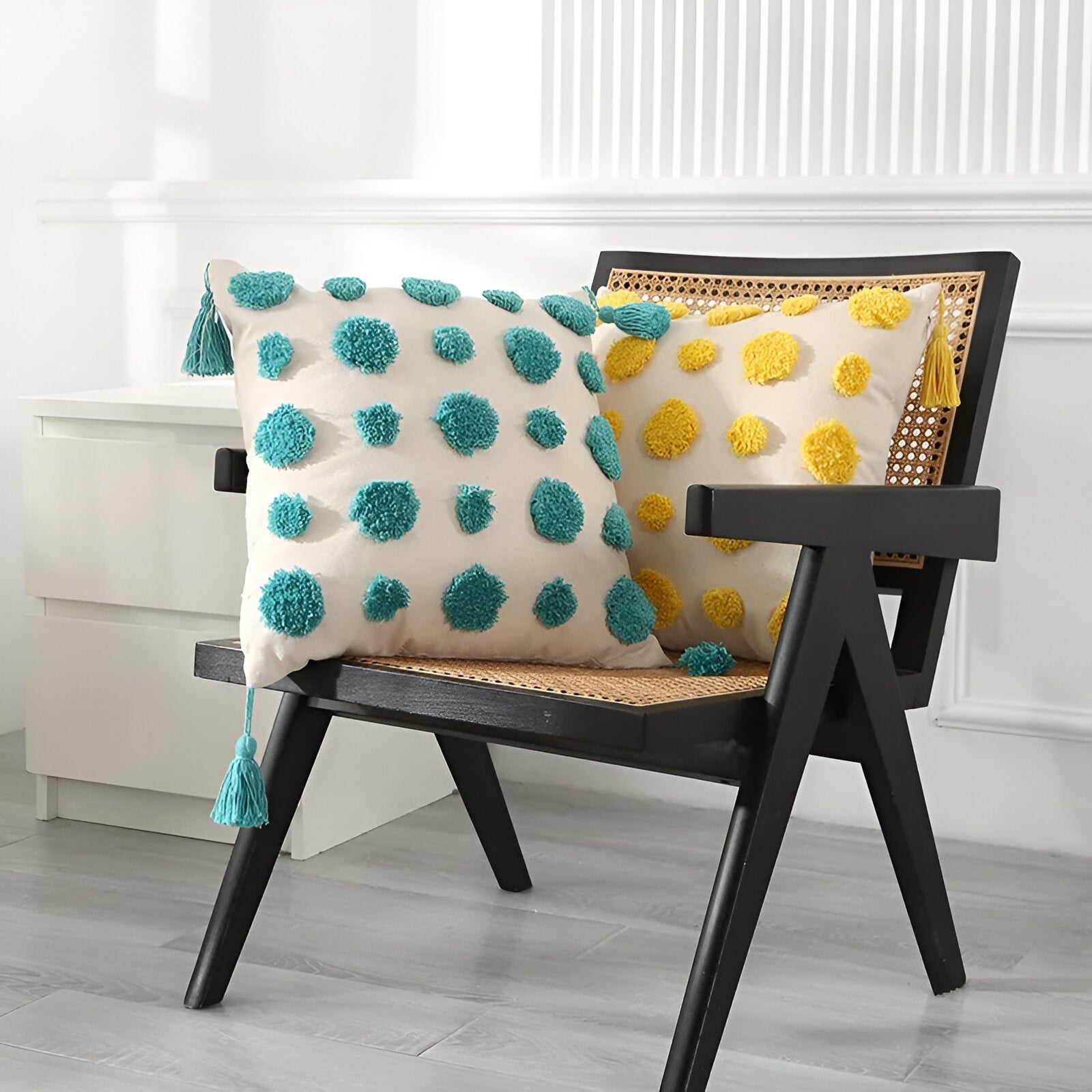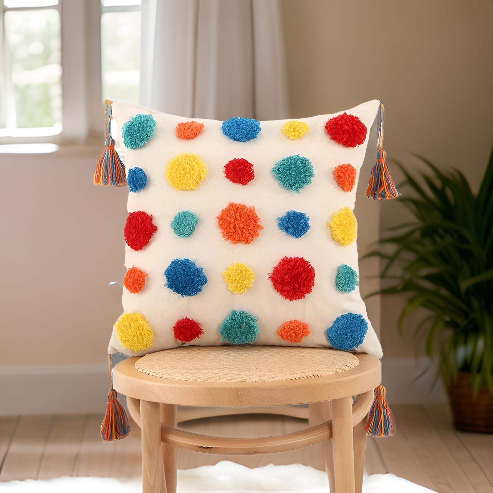 Verleihen Sie Ihrem Wohnzimmer mit diesem gepunkteten Kissenbezug einen bohemianischen Touch! Das gestufte Design fügt jedem Raum Textur und Tiefe hinzu, während die Größe von 45 cm x 45 cm perfekt für Sofas, Couches und sogar Schlafzimmer ist. Heben Sie Ihre Wohndekoration in dieser Saison mit diesem hübsch gefärbten gepunkteten Design hervor!