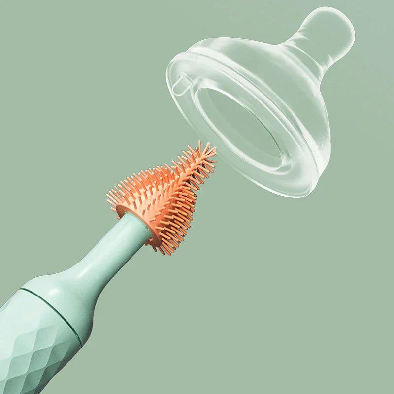 Schluss mit Schrubben und Einweichen! BottleSpark™ verfügt über eine leistungsstarke, aber sanfte Silikonbürste, die mühelos hartnäckige Rückstände, Milchflecken und schädliche Bakterien aus den Flaschen deines Babys entfernt. Der 360°-Rotationsbürstenkopf erreicht jede Ecke und jede Ritze und sorgt für eine Reinigung die mit bloßem Händewaschen nicht möglich ist.