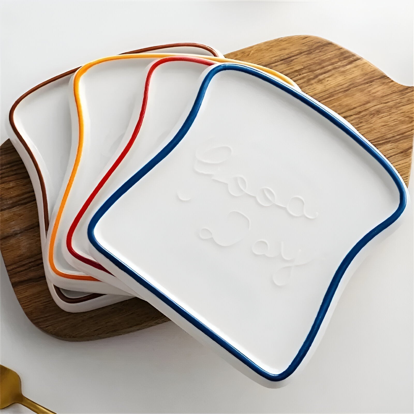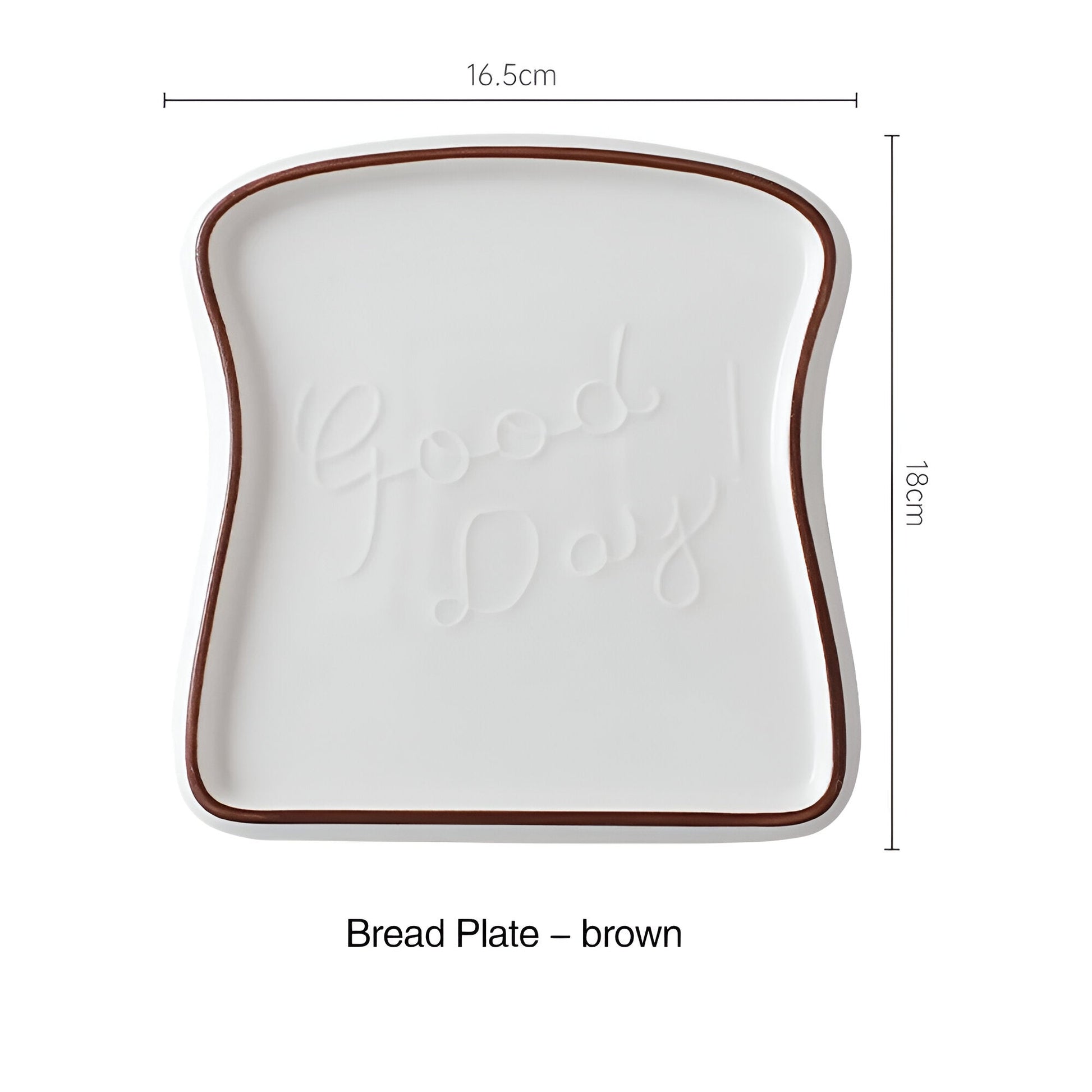 Beginnen Sie Ihren Tag mit einem Lächeln, wenn Sie diesen keramikbrotförmigen Frühstücksteller verwenden! Perfekt für Toast, Salat, Snacks und mehr, wird dieser ausgefallene Teller Ihrer Küchentafel einen Hauch von Humor verleihen. Machen Sie sich bereit für ein köstliches und verspieltes Frühstück mit diesem einzigartigen Teller.