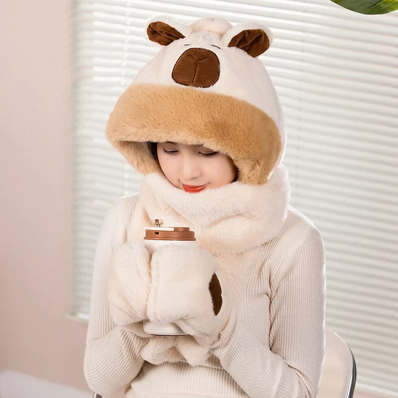 Capybara Schal Mütze mit gemütlichen Handtaschen – Wärme trifft auf Wow!