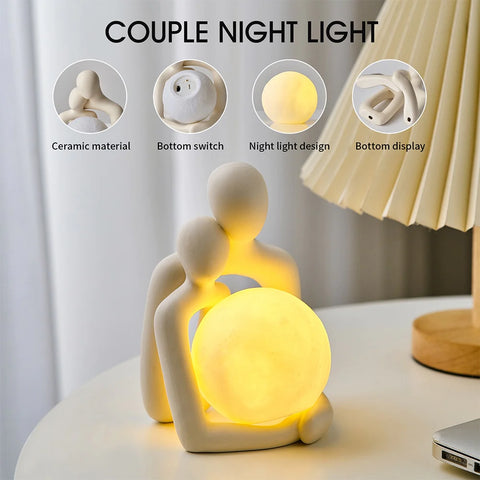 Das Couple™ Nachtlicht, eine harmonische Kombination aus Kunst und praktischer Nutzung, verwandelt Ihren Raum problemlos. Das sanfte Licht beleuchtet nicht nur den Raum, sondern erfüllt ihn auch mit Wärme und Zuneigung und schafft eine entspannte Atmosphäre zum Relaxen und Verweilen.