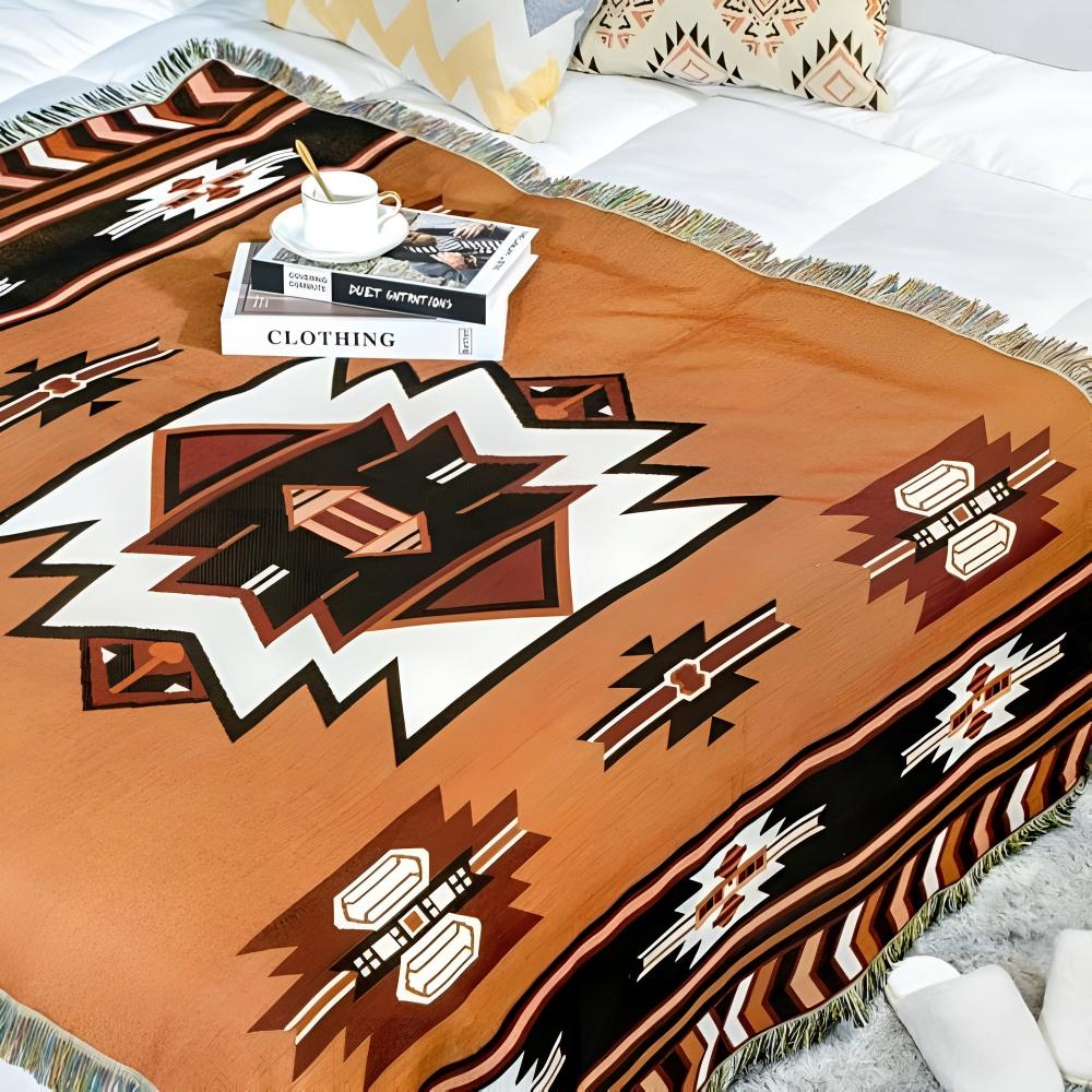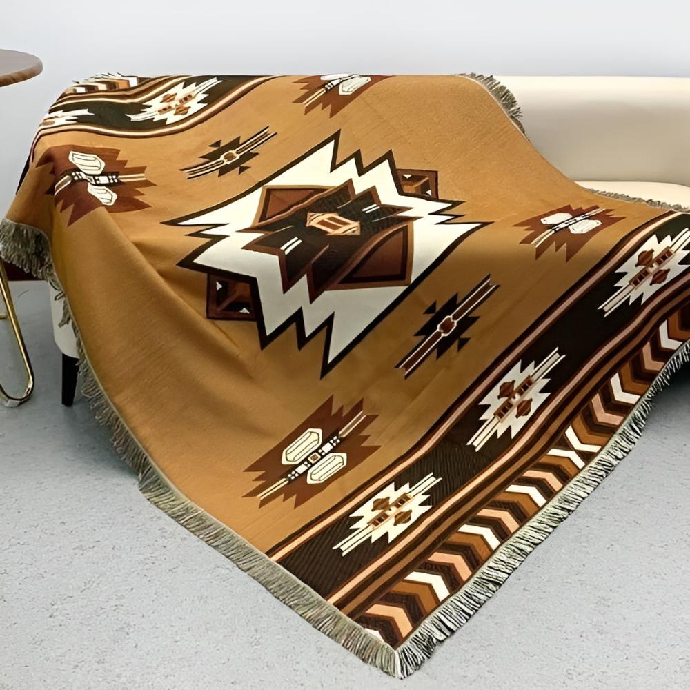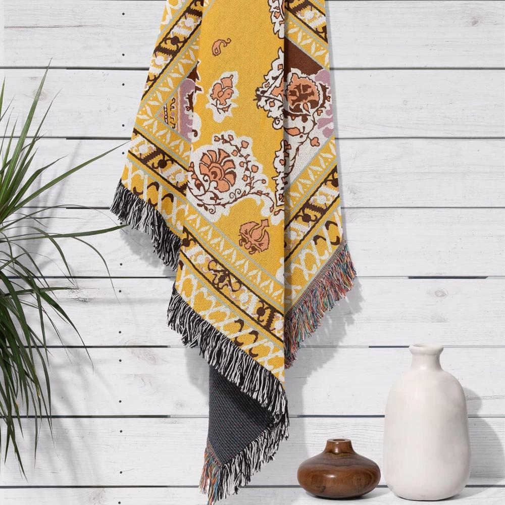 Fügen Sie Ihrem Raum mit dem Desert Bloom Tapestry Throw einen Hauch von lebendiger Boho-Eleganz hinzu. Sorgfältig gewebt für Weichheit und Haltbarkeit, bietet dieses Plaid komplizierte Jacquardmuster, die nicht nur Ihre Wohnkultur erheben, sondern auch Ihren einzigartigen Geschmack widerspiegeln. Perfekt, um Ihrem Sofa, Stuhl oder sogar als Hundedecke zum Schutz des Sofas einen hippiesken Flair zu verleihen.
