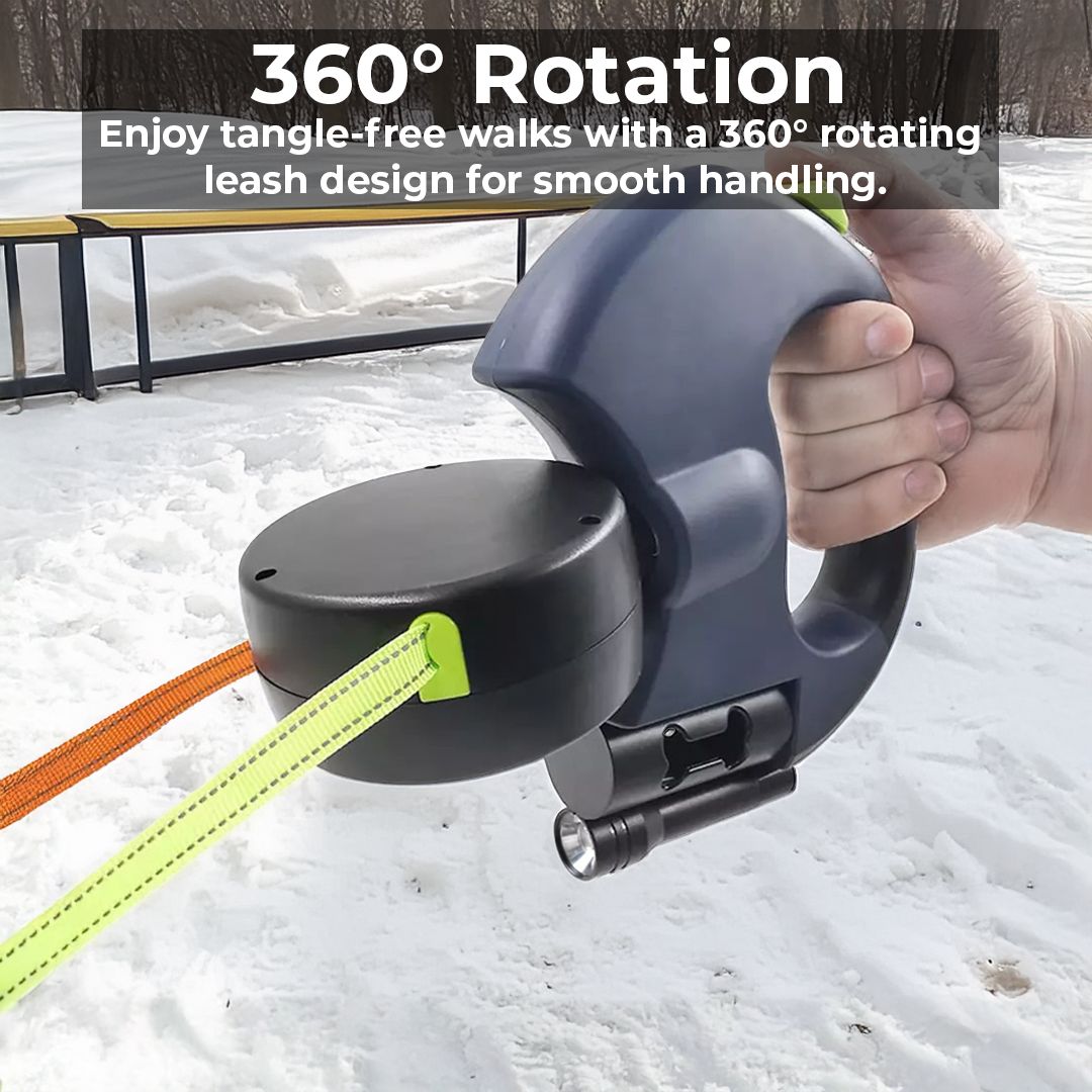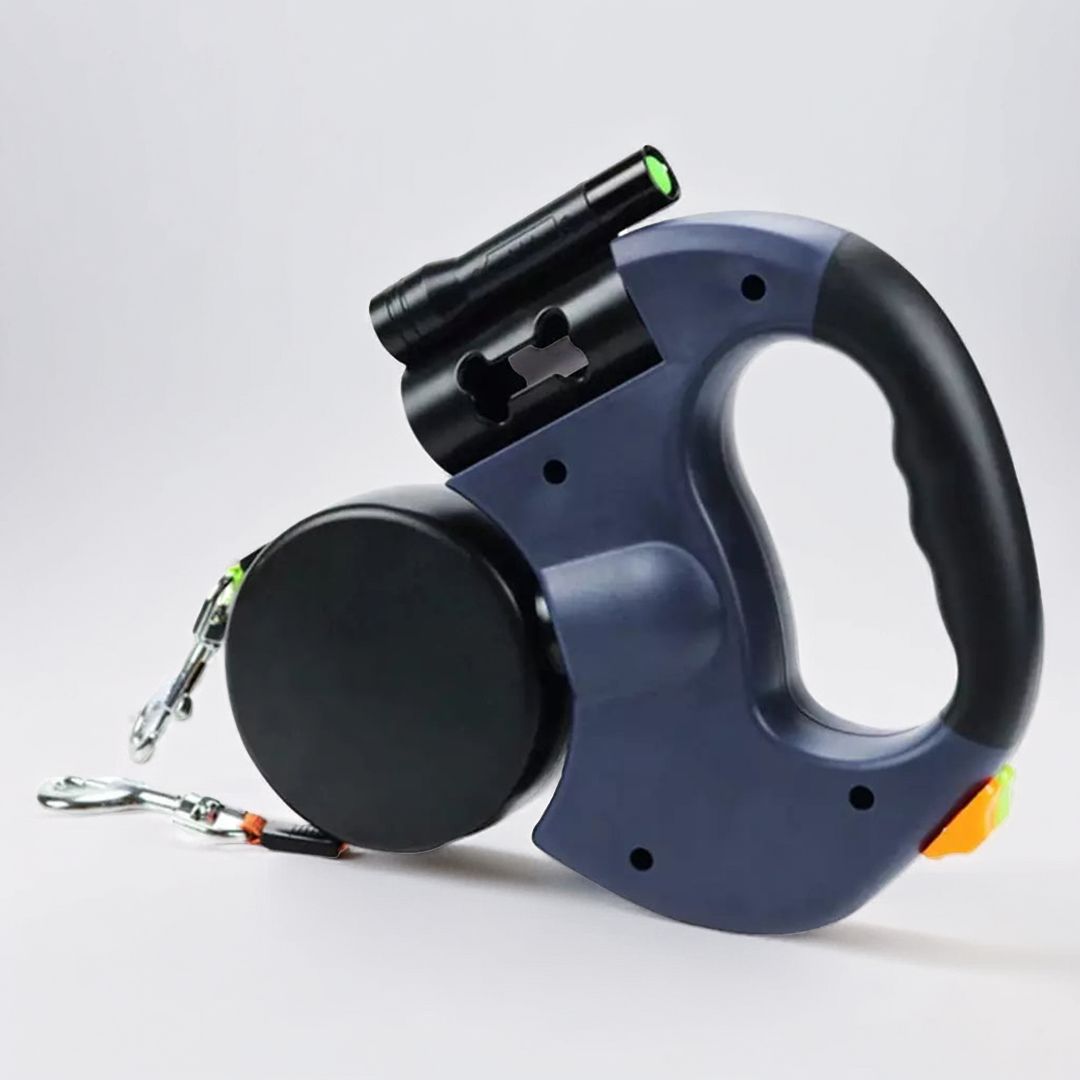 Duale rückziehbare Hundeleine mit Taschenlampe und Abfallbeutelhalter