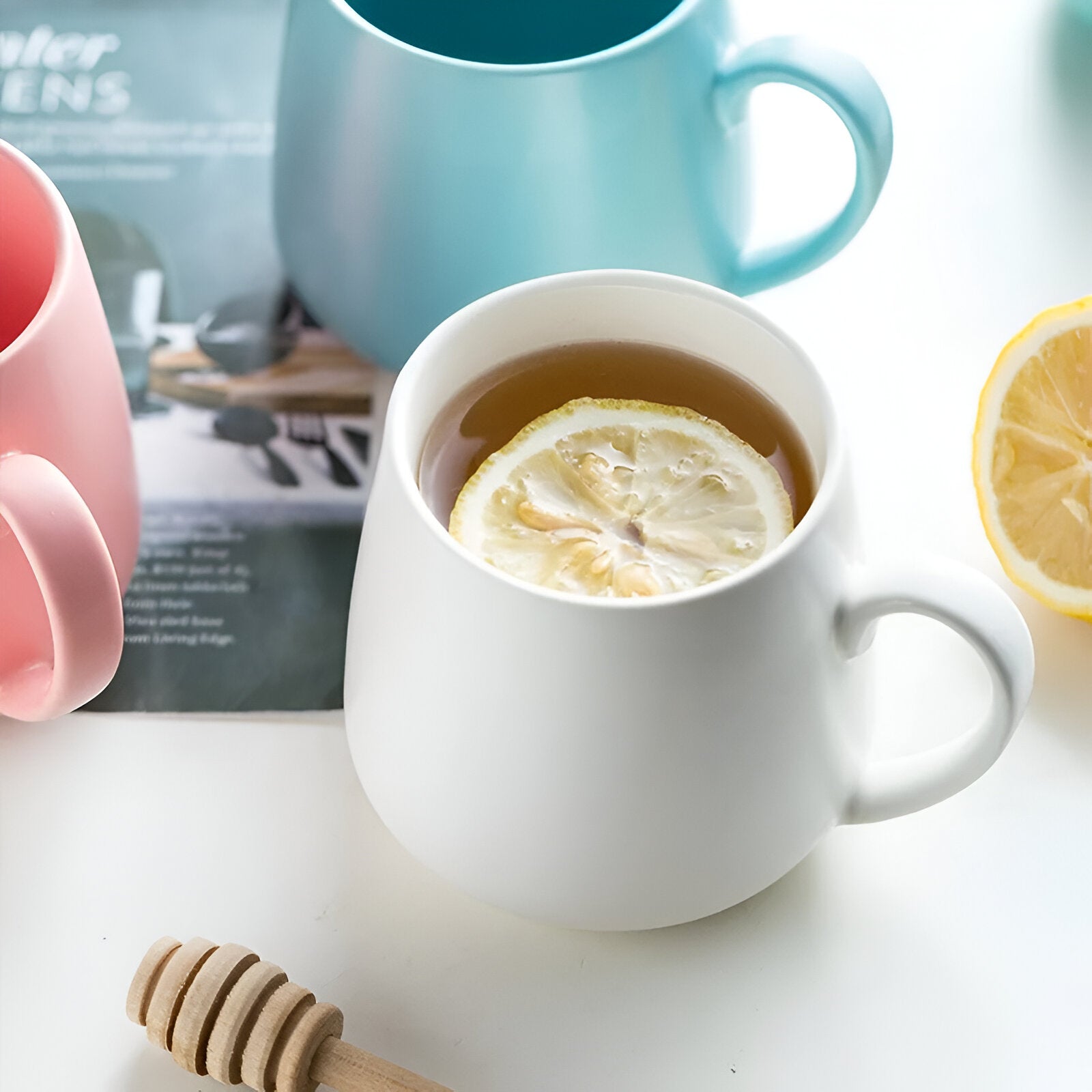 Wachen Sie auf und riechen Sie den Kaffee oder Tee oder Milch mit dieser keramischen Kaffeetasse! Ihre matte Oberfläche und reine, einfarbige Farbe fügen Ihrem Morgenritual eine kreative Note hinzu. Aus Porzellan gefertigt, ist diese farbenfrohe Tasse nicht nur süß, sondern auch langlebig, damit Sie stilvoll genießen können.