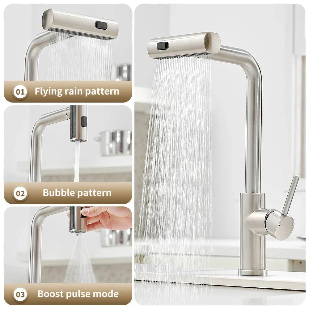 Edelstahl Ausziehbarer Küchenwasserhahn Wasserfall Mischwasser Spültapete