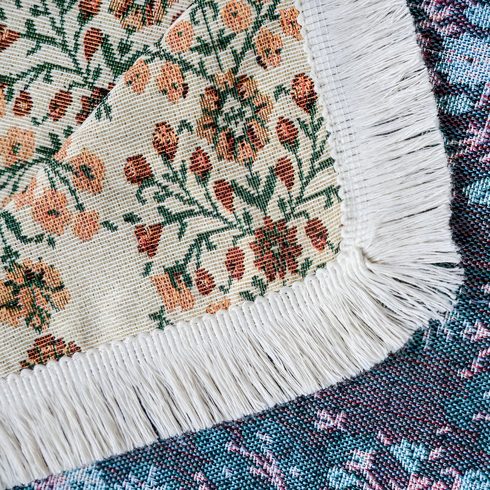 - Verfügt über ein Pflaumenblütenmuster mit Quastenrand.