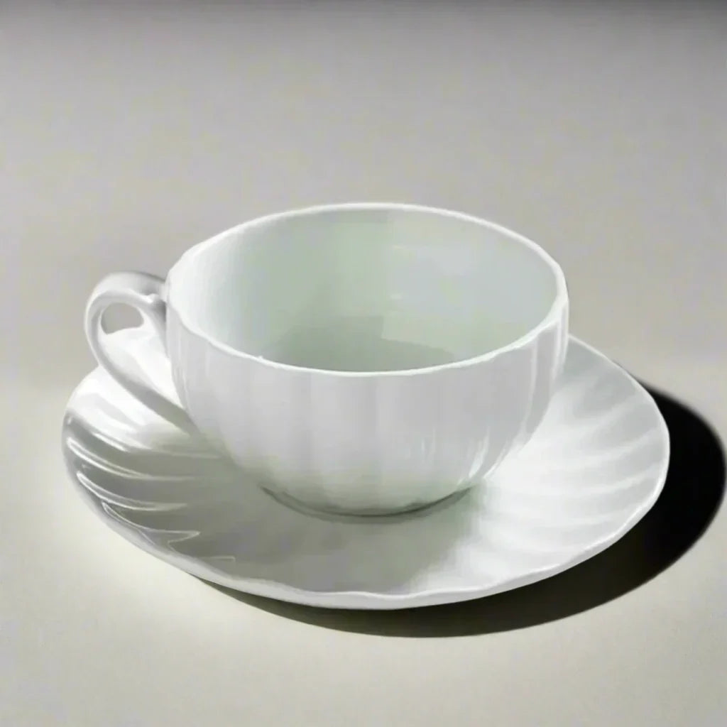 - Passende Untertasse. Vervollständigt das Set, indem sie Stil und Praktikabilität auf Ihren Tisch bringt.