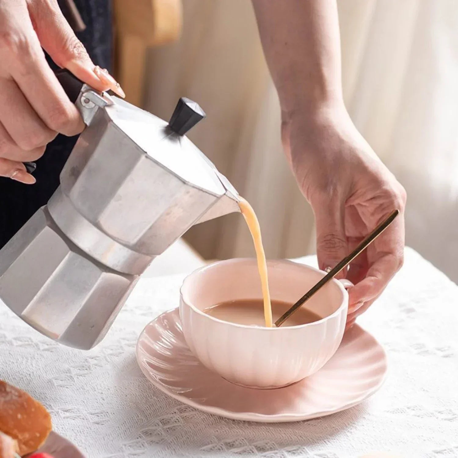 Verleihen Sie Ihrer Tee- oder Kaffeepause mit diesem raffinierten Keramikset einen Hauch von Eleganz.