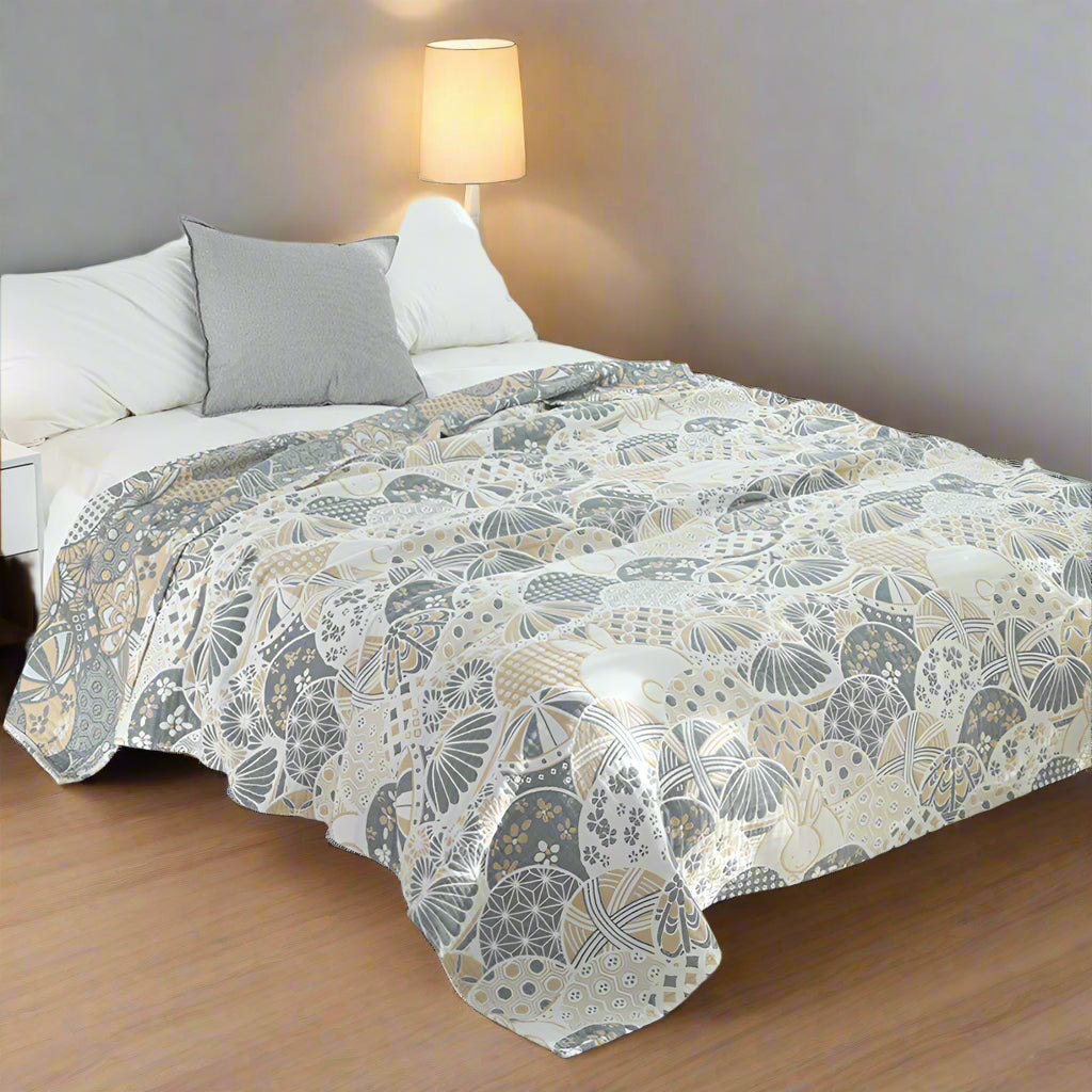 Erhöhen Sie Ihren Komfort mit der Joyful Haven Vier-Lagen Baumwolldecke. Entworfen für jede Jahreszeit, bieten die Baumwolllagen aus Gaze leichte Atmungsaktivität für sommerliche Abende, während sie Sie an kühleren Nächten warmhalten. Perfekt, um Ihrem Schlafzimmer oder Sofa eine sanfte, stilvolle Note zu verleihen, verbindet diese Decke mühelos Funktionalität und Charme für jede Einrichtung.