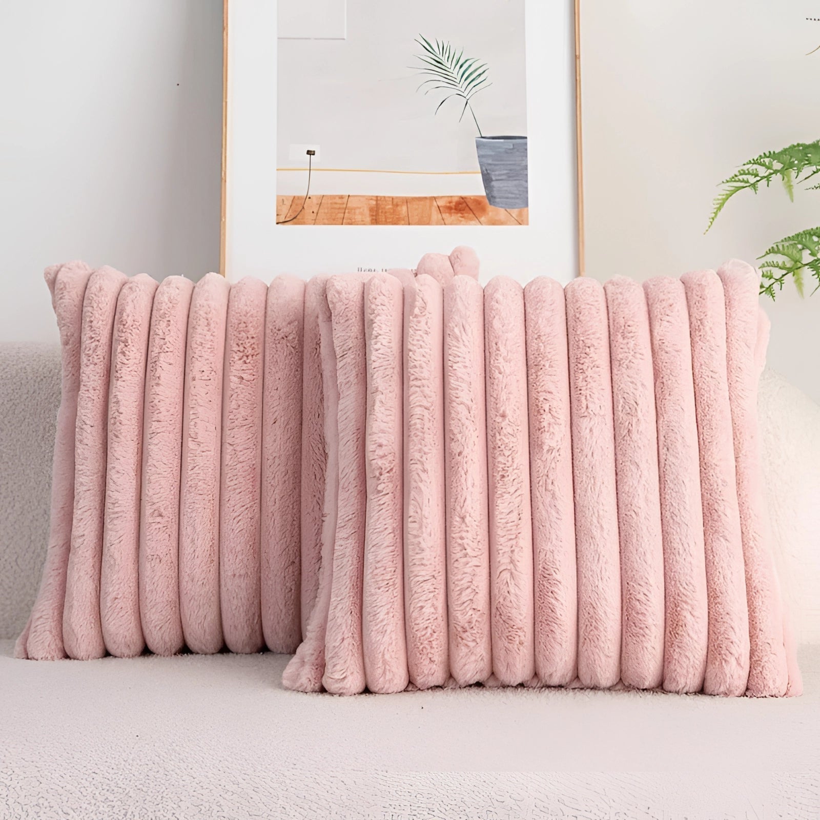 Stilvolle gerippte Dekokissen aus superweichem Plüsch für geschmackvolle Wohnräume