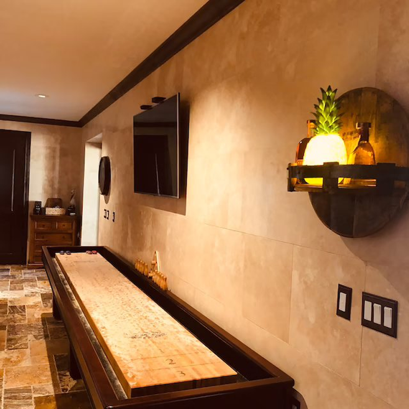 Erforschen Sie elegante Möglichkeiten, Ihre Whisky- oder Weinflaschen zu präsentieren mit unserem handgemachten wandmontierten Weinregal. Jedes Regal wird aus wiederverwendeten Bourbonfässern gefertigt, was es nicht nur nachhaltig, sondern auch zu einem Unikat macht. Die Kombination aus exquisitem Design und praktischer Anwendbarkeit macht dieses Regal zum idealen Blickfang in Ihrer Bar oder Küche. Genießen Sie die Anmut des Eichenholzes, das durch eine Polyurethan-Beschichtung strahlt, während Sie Ihre Getränke stilvoll zur Schau stellen.