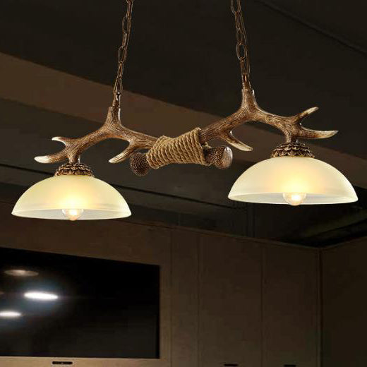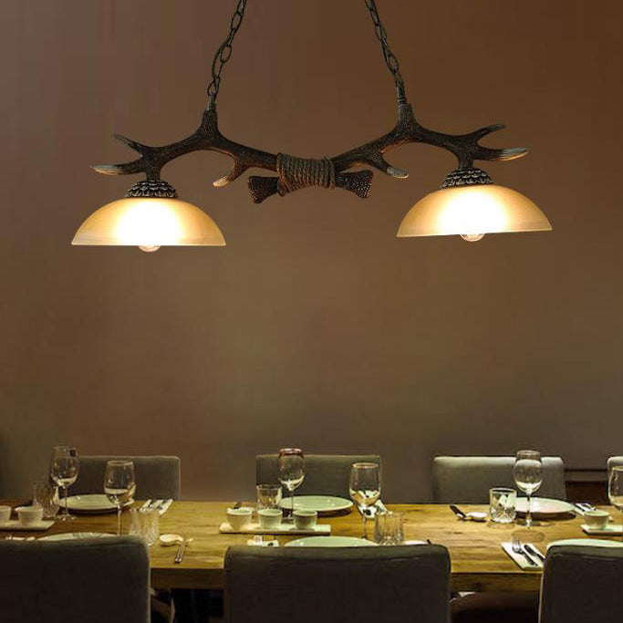 Garduru Vintage Kronleuchter | Harz-Geweih | Glasschalen-Lampenschirme | 2-Licht Deckenleuchte | Rustikaler Landhausstil für Wohnzimmer & Esszimmer