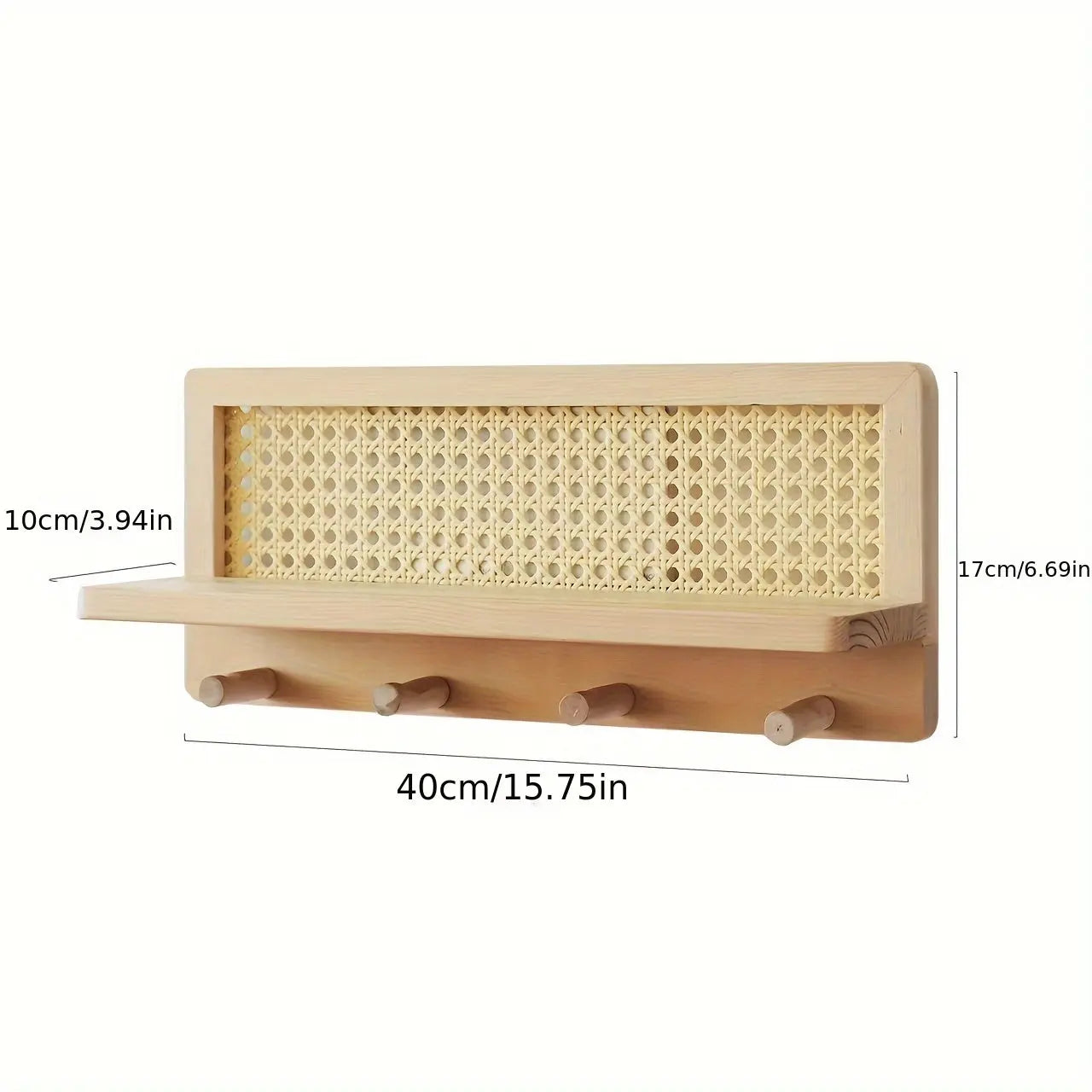 Das Regal bietet nicht nur Platz für Ihre Lieblingsaccessoires, sondern auch für Ihre alltäglichen Essentials. Die vier robusten Haken stellen sicher, dass Ihre Schlüssel, Jacken oder Taschen stets griffbereit sind. Die Montage gestaltet sich schnell und einfach, sodass Sie im Nu mehr Ordnung und Stil in Ihren Raum bringen können.