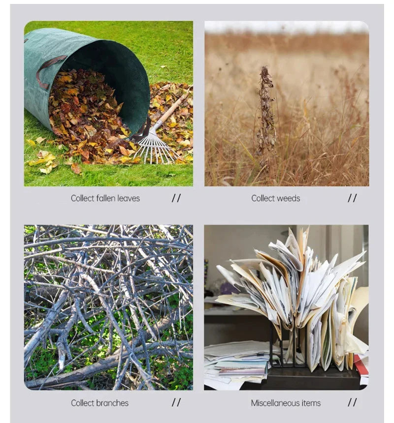 🏡 Vielseitige Anwendungen: Ideal zum Sammeln von Blättern, Grasschnitt, Pflanzenabfällen und totem Laub. Auch perfekt zur Aufbewahrung von Spielzeug, Wäsche, für Umzüge oder sogar als Einkaufs- oder Campingbeutel.