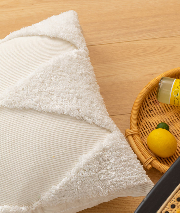 - Geometrisches Muster mit weichen Quasten an jeder Ecke