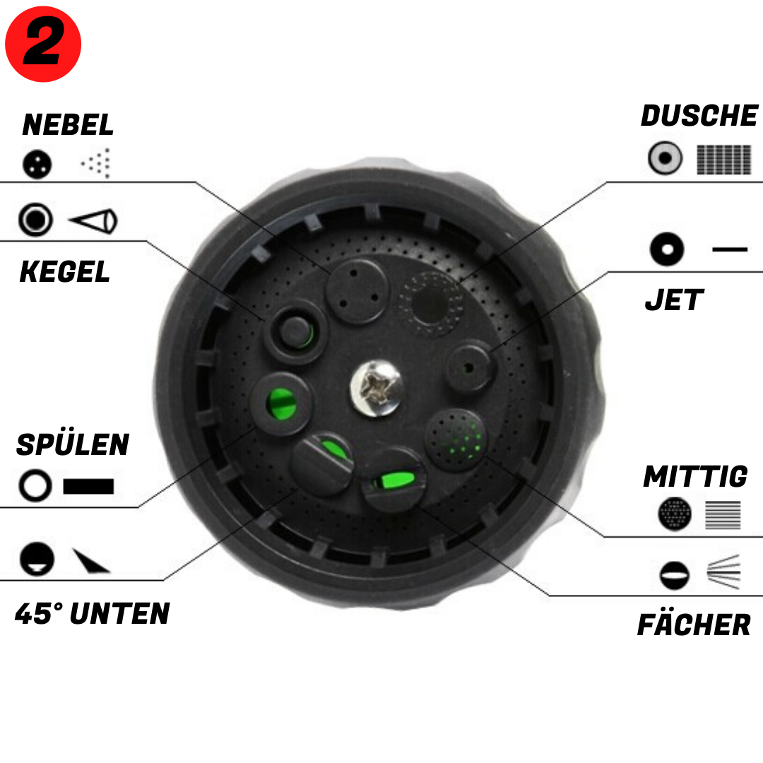8 verschiedene Sprühmuster