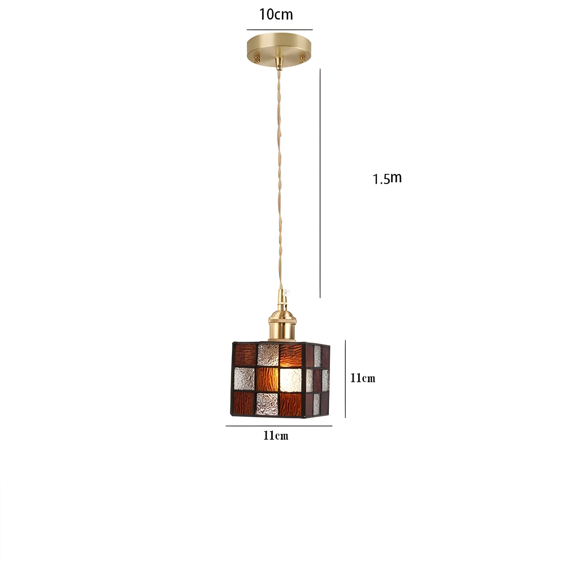 IllumaStyle Japanische Pendelleuchte - Retro Geometrische Kupfer Glas Hängelampe
