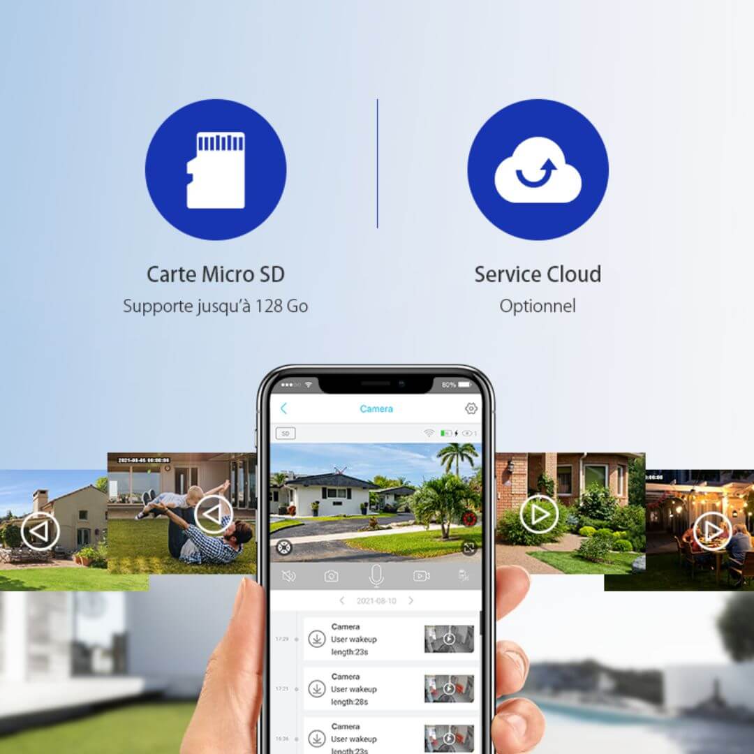 Sichere Speicherung: Automatische Aufzeichnung auf Micro-SD-Karte (bis zu 128 GB) oder über Cloud (optional).