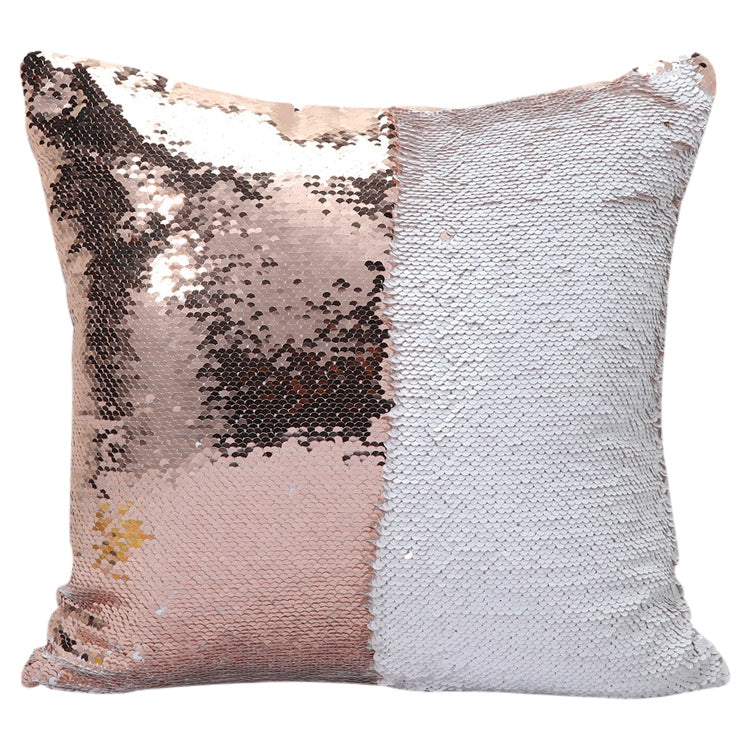 Kissenbezug mit Doppelseitigen Pailletten – Zwei-Ton Design – Weiß & Champagner Gold