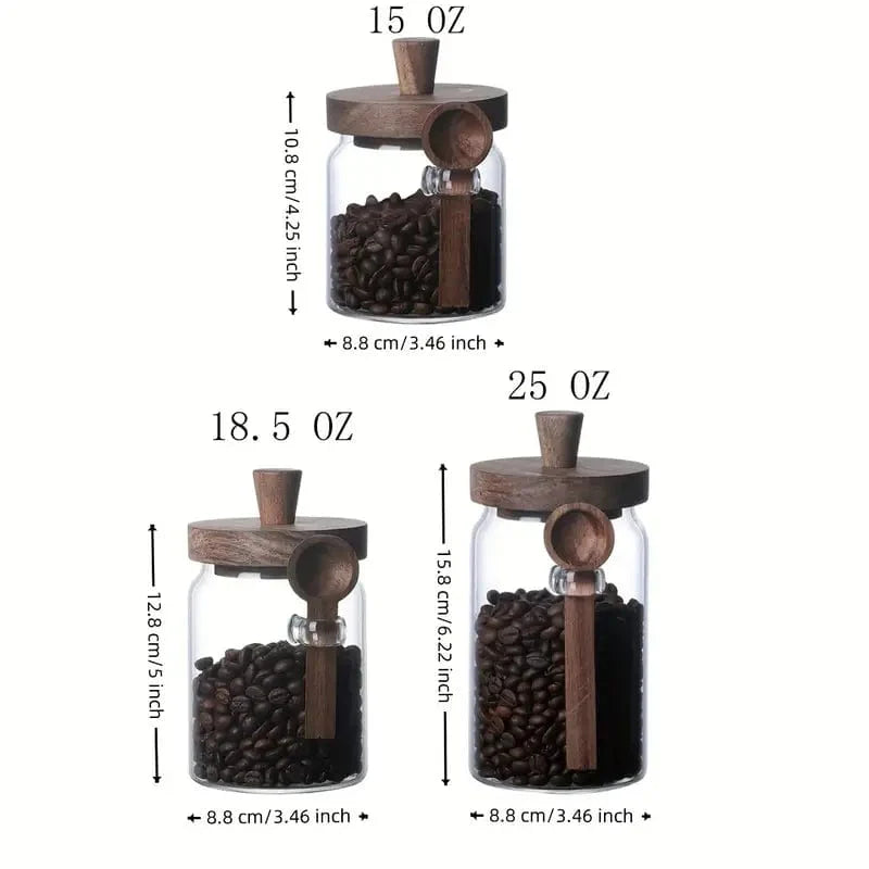 Vollständig mit einem integrierten Holzlöffel ausgestattet, macht dieses Aufbewahrungsglas das Schöpfen mühelos – egal, ob Sie nach Zucker, Kaffee, Tee oder Getreide greifen. In mehreren Größen erhältlich, ist es die perfekte Ergänzung für jede moderne, minimalistische oder rustikale Küche.