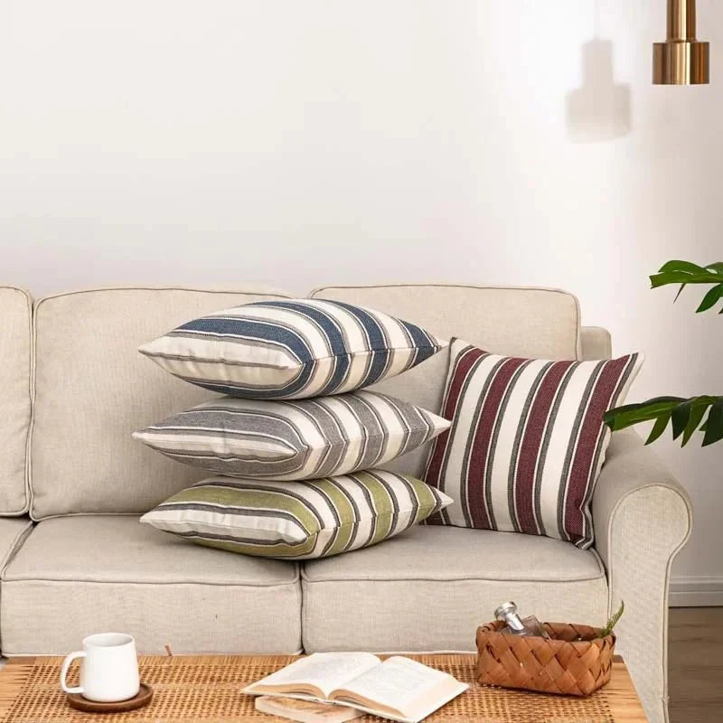 Fügen Sie Ihrem Wohnraum mit diesem gestreiften Leinenkissenbezug einen Hauch von Stil und Komfort hinzu. Hergestellt aus hochwertigem Leinen, ist dieser Bezug wasserabweisend und somit perfekt für die Verwendung auf Ihrem Sofa oder Bürostuhl. Wählen Sie aus einer Vielzahl von uni Farben, um Ihre Dekoration zu ergänzen. (Kissenfüllung nicht enthalten.)