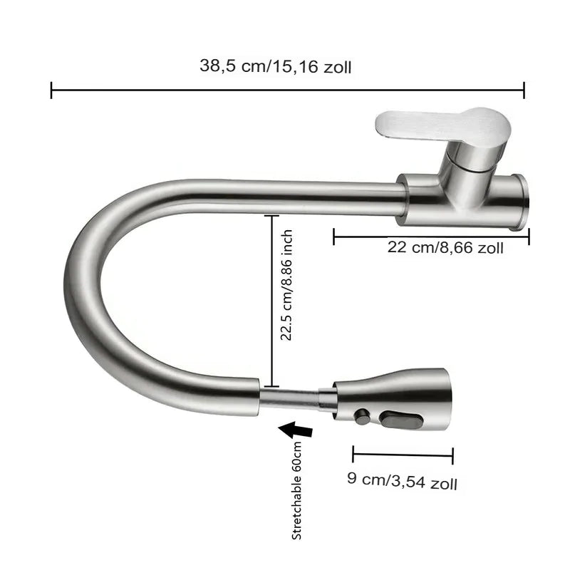 Hochwertige Verarbeitung: Aus strapazierfähigem Edelstahl 304 und einem Innenrohr aus robustem ABS-Kunststoff gefertigt, bietet dieser Wasserhahn sowohl Langlebigkeit als auch Zuverlässigkeit.