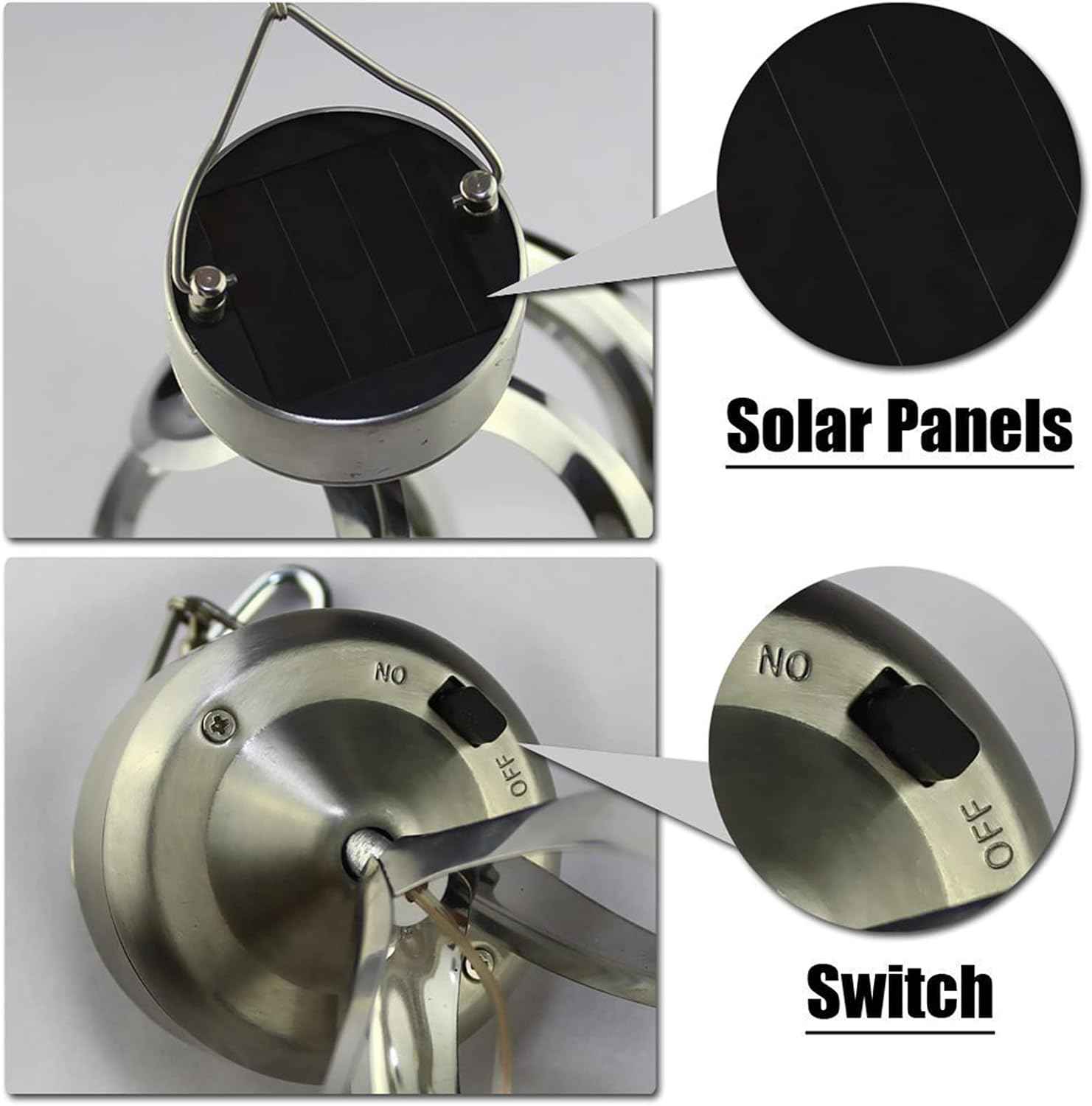 Hergestellt aus hochwertigen, wetterbeständigen Materialien, ist dieser metallene Windspinner darauf ausgelegt, den Elementen standzuhalten und langfristige Haltbarkeit zu gewährleisten. Das integrierte Solarpanel absorbiert tagsüber effizient Sonnenlicht, sodass die LED-Lichter nachts automatisch aufleuchten. Es sind keine Kabel oder Elektrizität erforderlich – hängen Sie es einfach an einem sonnigen Ort auf und lassen Sie die Natur den Rest erledigen!