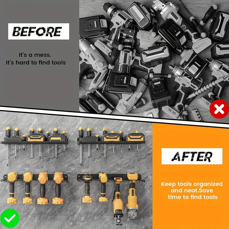 - Integrierte Fächer: Ordnen Sie Bohrer, Schraubendreher, Nägel und mehr mit Leichtigkeit.