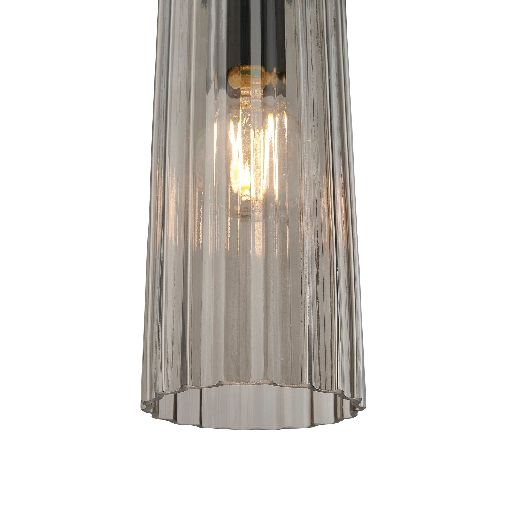 Verbessern Sie Ihren modernen und eleganten Wohnraum mit der Miella 3 Light Pendant. Ihr geriffeltes Glasdesign strahlt Glamour aus und schafft eine gemütliche Atmosphäre. Perfekt für Ess- oder Küchenbereiche kombiniert diese Pendelleuchte mühelos Stil und Atmosphäre.