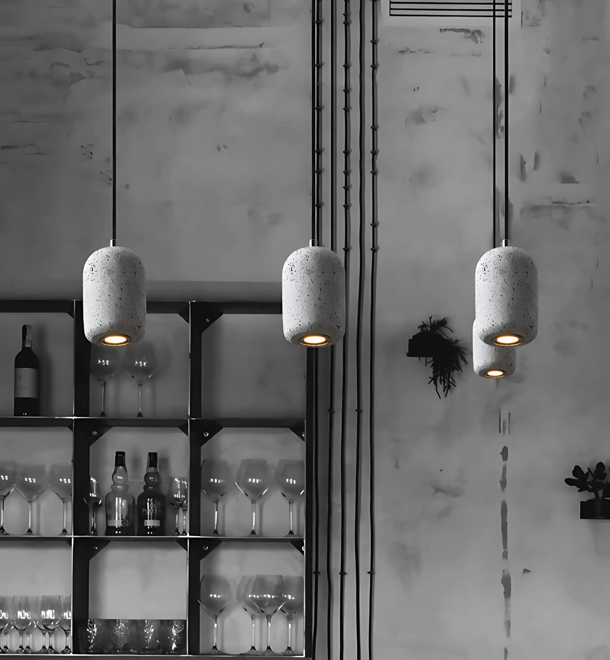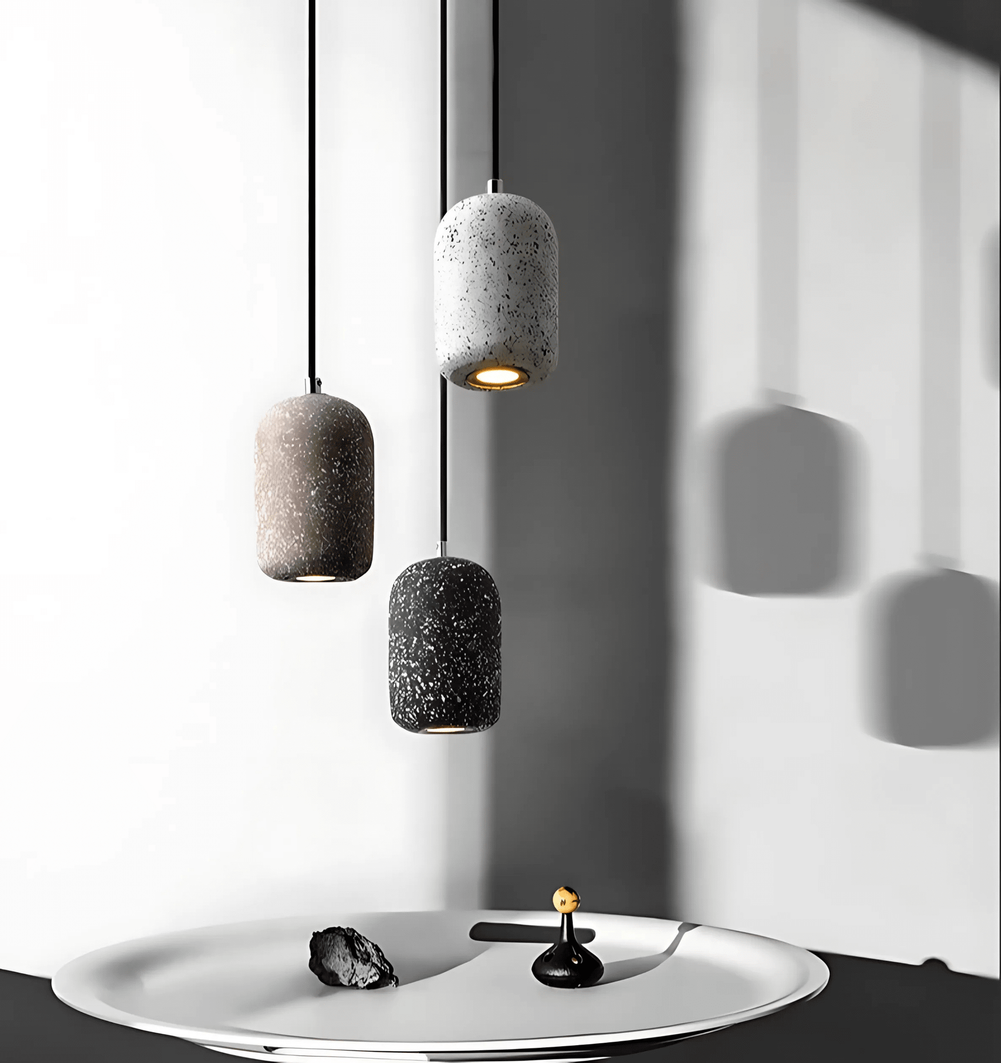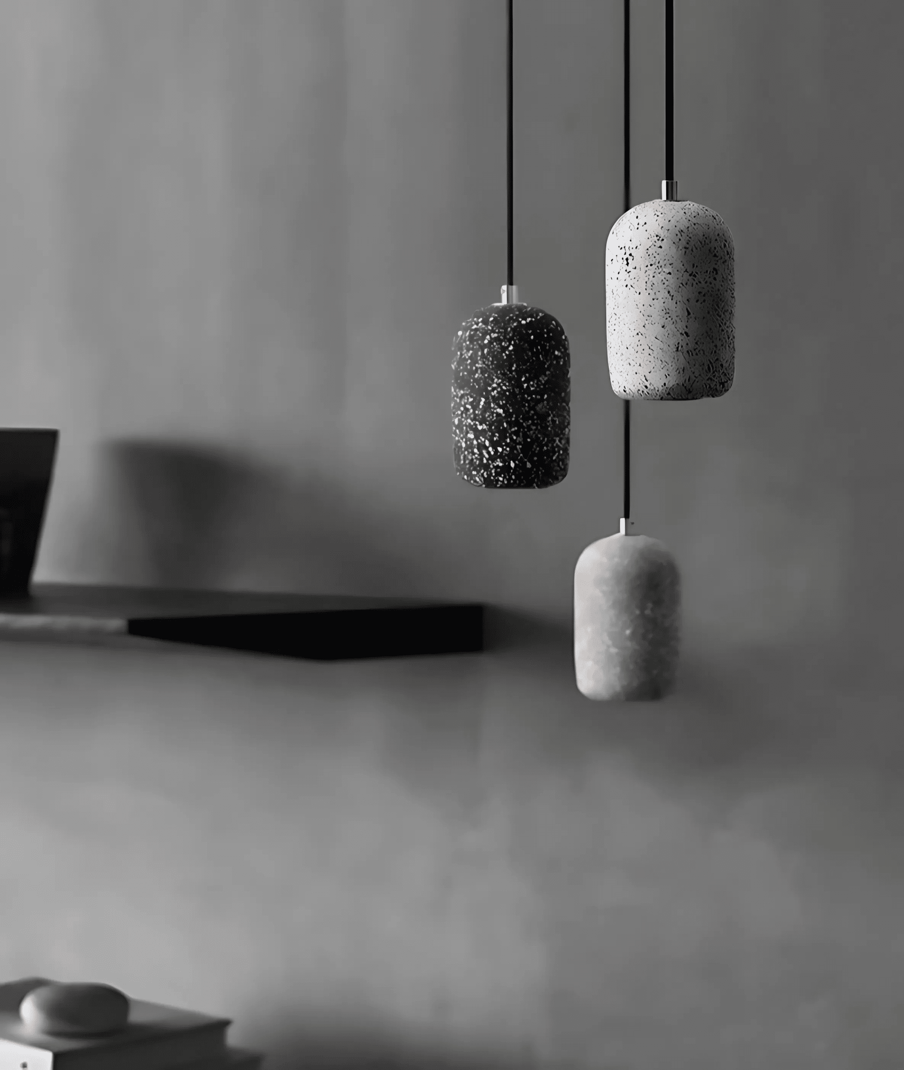 Jede Leuchte wird aus einem einzigen Stück Beton gegossen, was eine harmonische und moderne Ästhetik hervorbringt.