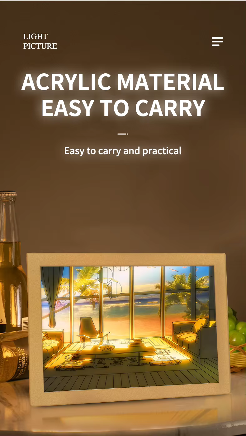 Verwandeln Sie Ihr Schlafzimmer, Wohnzimmer oder Arbeitsbereich mit dem **Dimmbaren Lichtgemälde**. Diese atemberaubende Kombination aus Kunst und Beleuchtung bietet eine kreative Möglichkeit, Ihre Dekoration zu verbessern. Mit dreifarbiger Dimmfunktion, schlanken modernen Ästhetik und sanfter Umgebungsbeleuchtung bietet dieses Gemälde sowohl Funktionalität als auch Schönheit für jeden Raum.