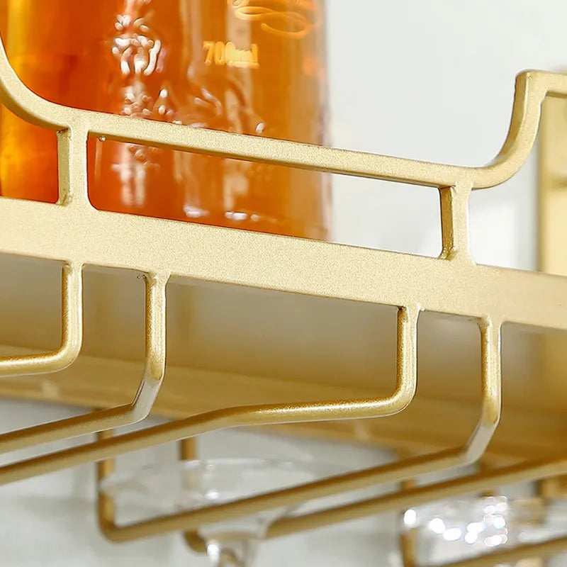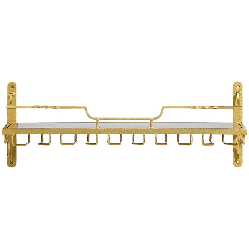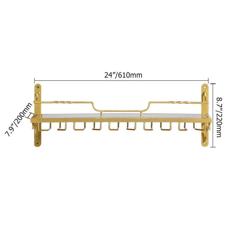 Verleihen Sie Ihrem Wohn- und Essbereich neue Akzente mit unserem eleganten Wand-Weinregal mit Gläserhalter. Dieses schicke Regal ist eine ideale Lösung zur platzsparenden und stilvollen Aufbewahrung Ihrer Weinflaschen und Gläser. Hergestellt aus hochwertigem Metall und mit einer edlen goldenen Oberfläche veredelt, fügt es sich harmonisch in moderne sowie skandinavische Einrichtungsstile ein.