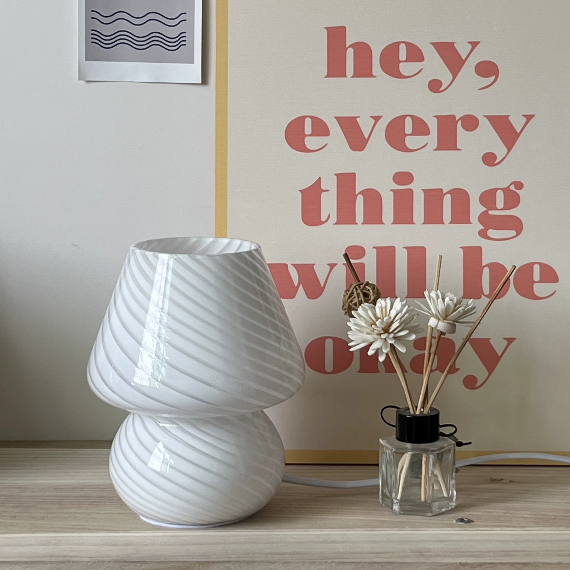 Verleihen Sie Ihrem Raum mit der Glas-Pilz-Tischlampe ein gemütliches, vintage Licht