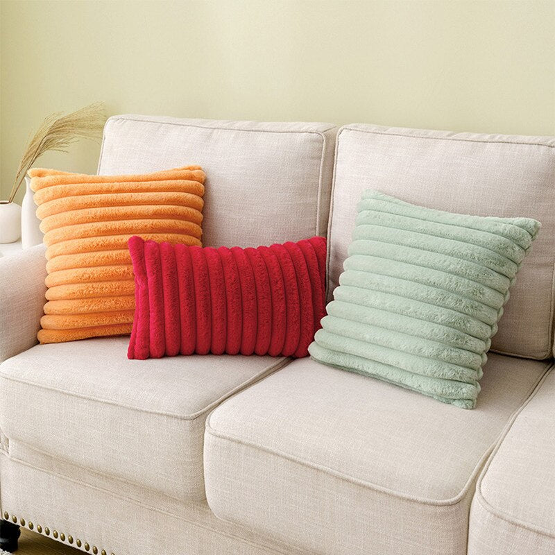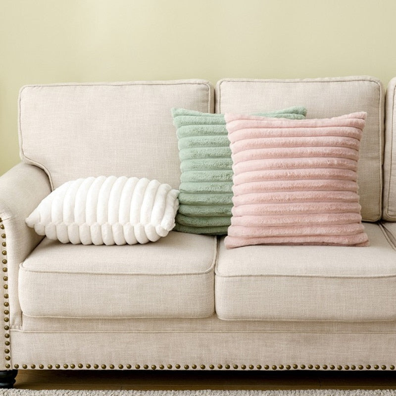 Fügen Sie jedem Raum einen Hauch von pastellfarbener Eleganz und Dimension mit den Nube Kunstpelz-Kissenbezügen hinzu, die in quadratischen und länglichen Formen erhältlich sind, um Ihren Kissenbedürfnissen gerecht zu werden. Jeder Kissenbezug ist mit üppigem und weichem Kunstpelz arrangiert, der in einem geriffelten Texturdesign angeordnet ist, um ein zusätzliches visuelles Interesse zu schaffen. Wählen Sie aus 6 hübschen Farbtönen, die Ihr Sofa oder Bett gemütlich ergänzen.