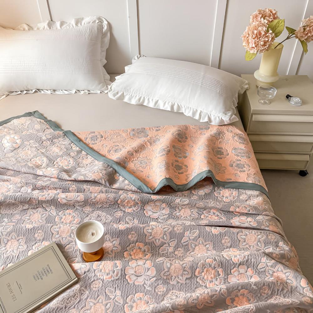 Retro Blumen Sommer Baumwollgaze Tagesdecke