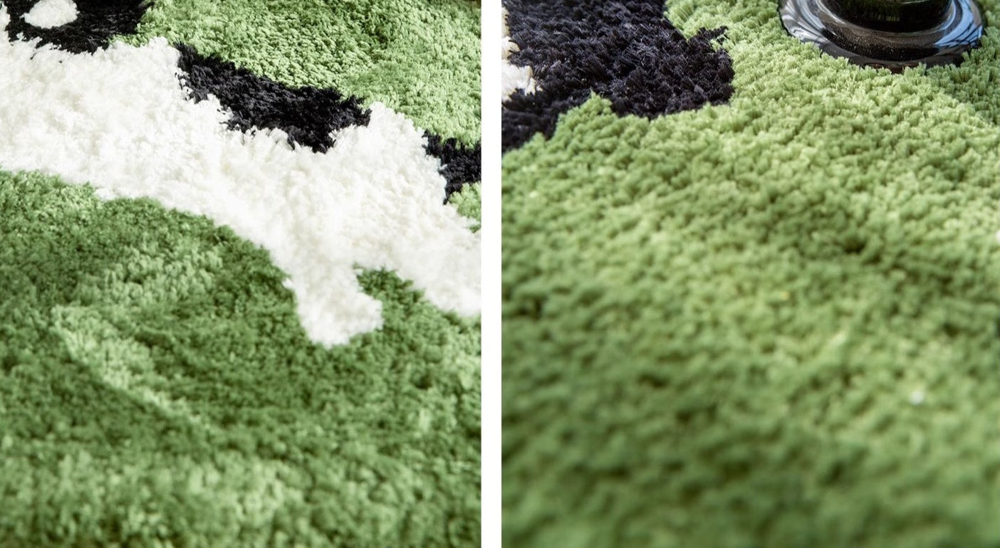 Dieser adorable Teppich verfügt über ein verspieltes Design einer Molkerei-Katze, das perfekt für jeden jungen Tierliebhaber ist.