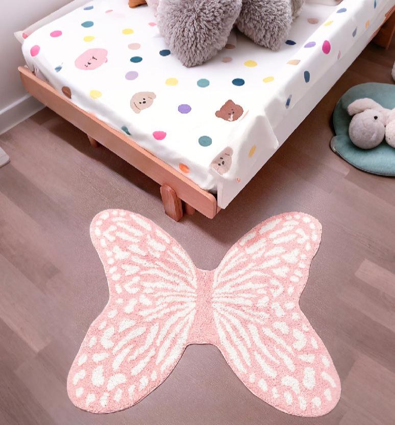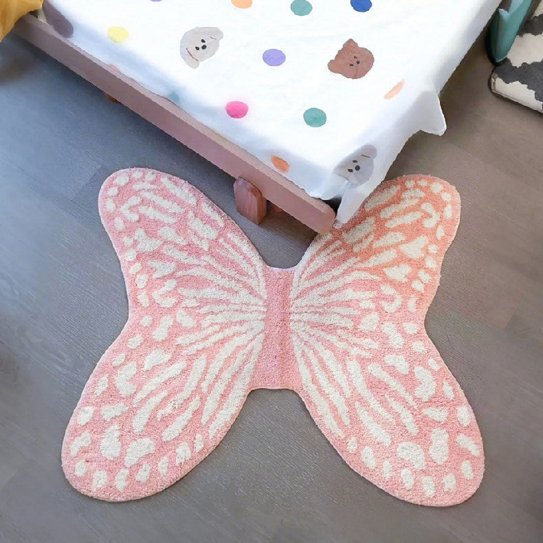 Dieser exquisite Teppich, der die Form eines Schmetterlings hat und mit einem zarten Blumenmuster verziert ist, bringt einen Hauch von natürlicher Schönheit direkt in Ihr Schlafzimmer oder in jede geschätzte Ecke Ihres Hauses.