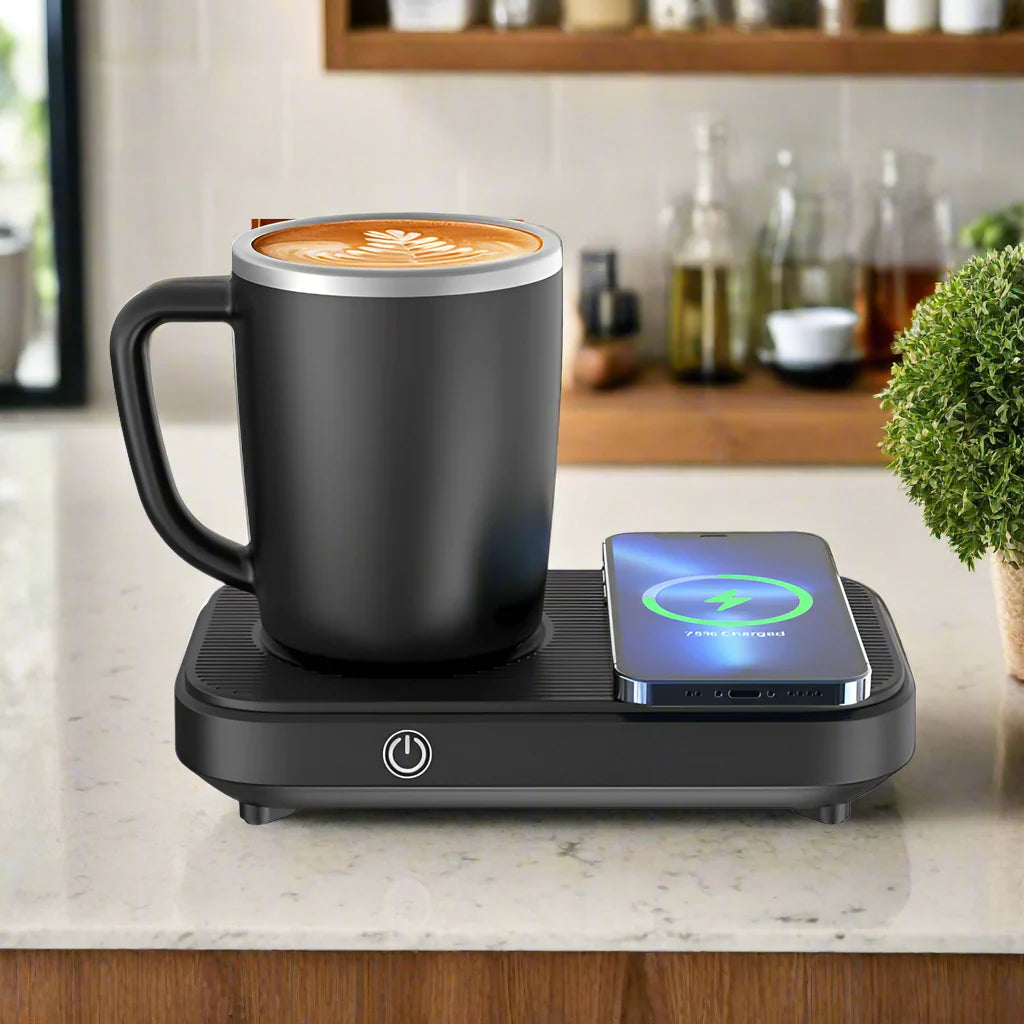 Das Royaleva Thermostatpad für heiße und kalte Tassen ist Ihr ultimativer Begleiter für zu Hause und im Büro. Dieses multifunktionale 3-in-1-Gerät bietet präzise Heizung, schnelle Kühlung und drahtloses Laden und bietet unvergleichlichen Komfort. Wechseln Sie mühelos zwischen Heizen bis 55 °C und Kühlen bis 8 °C mit einem einfachen Druck. Perfekt für Kaffee, Tee oder kalte Getränke sorgt dieser innovative Untersetzer dafür, dass Ihr Getränk die ideale Temperatur hält, während er gleichzeitig Ihr Handy drahtlos auflädt!